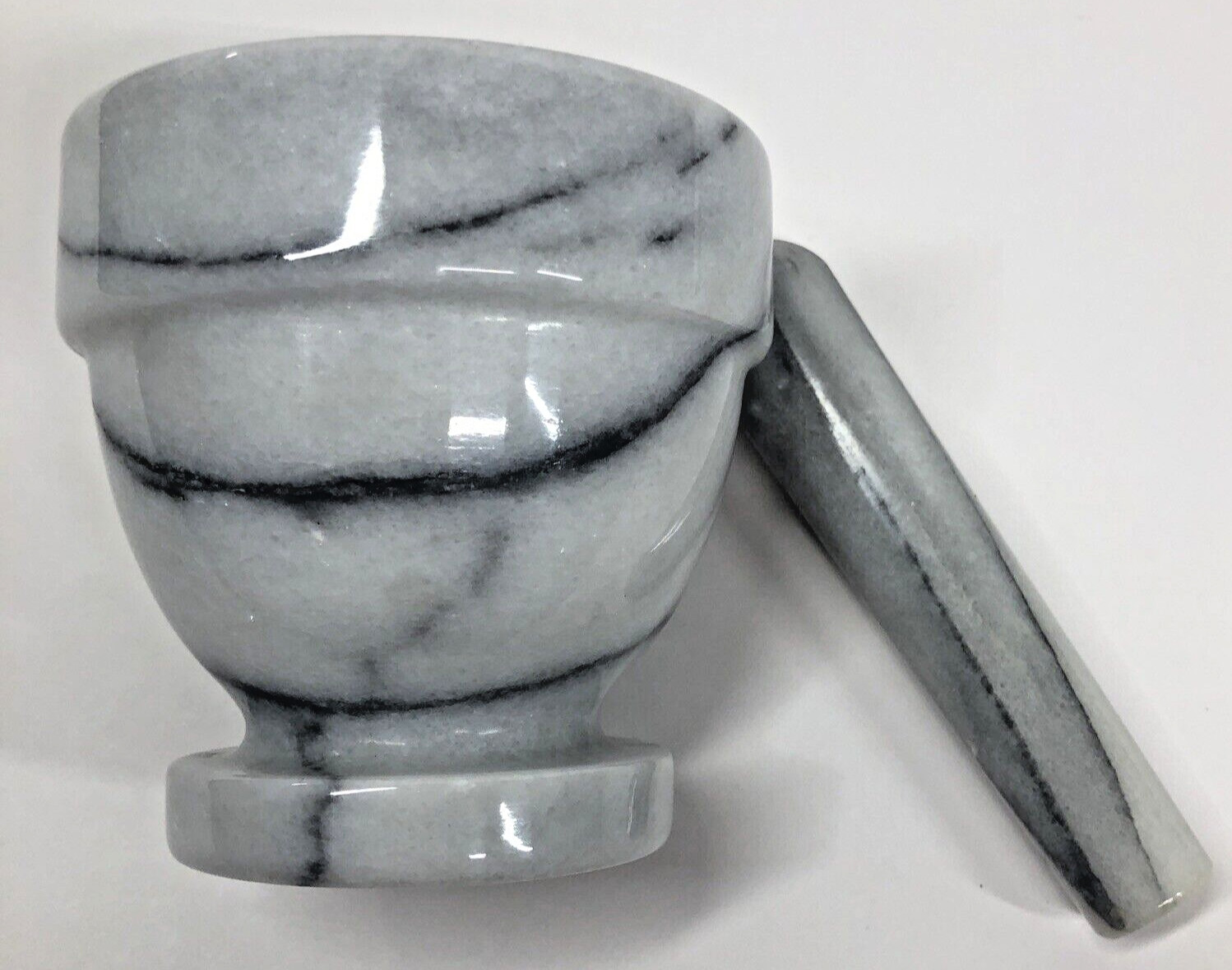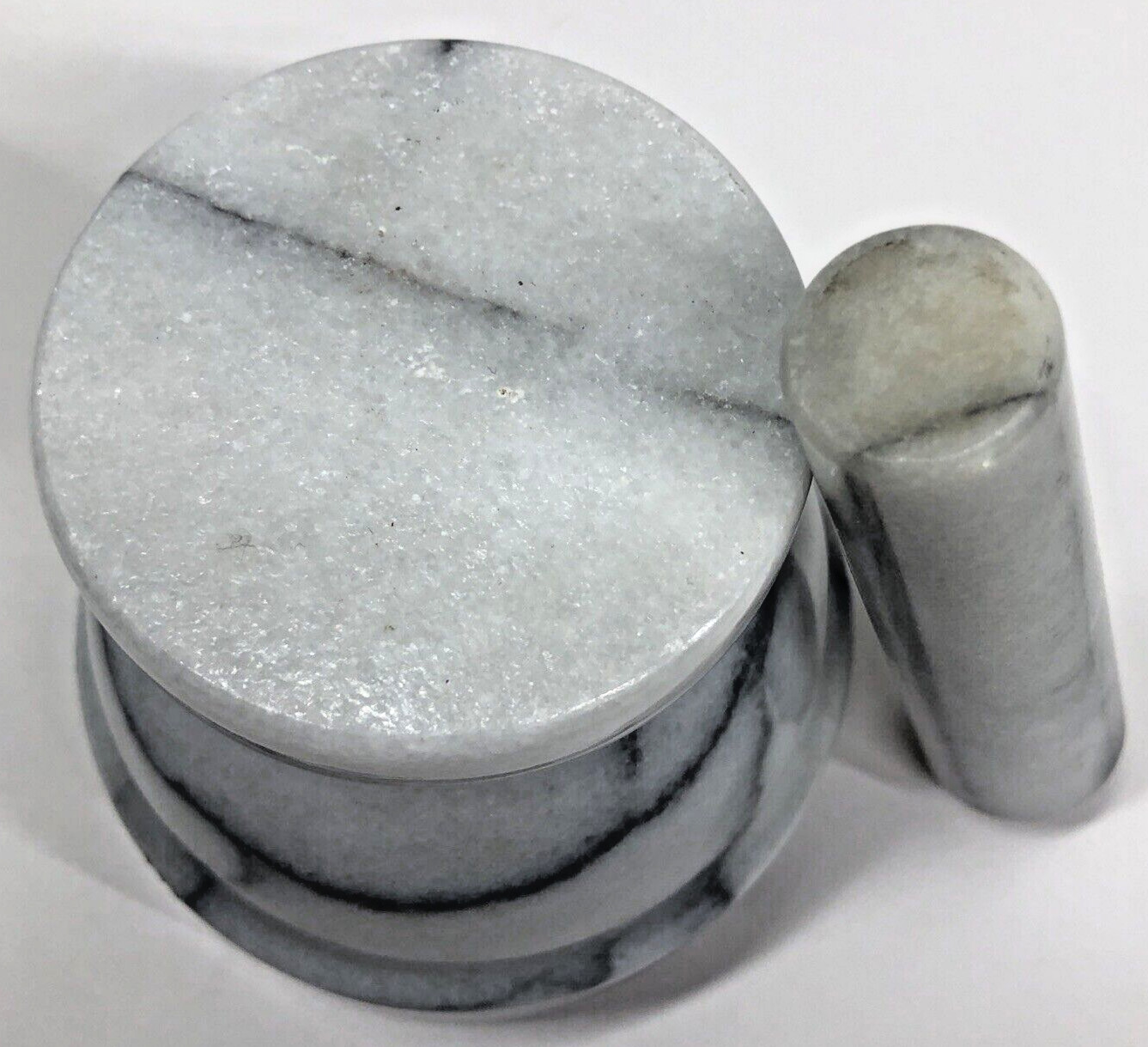 как выглядит Marble Mortar and Pestle Set Pill Crusher Spice Grinder Gray and White фото