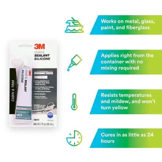 3M Marine Grade Silicone Sealant, Clear, 3 oz Tube, 6 Tubes per Case