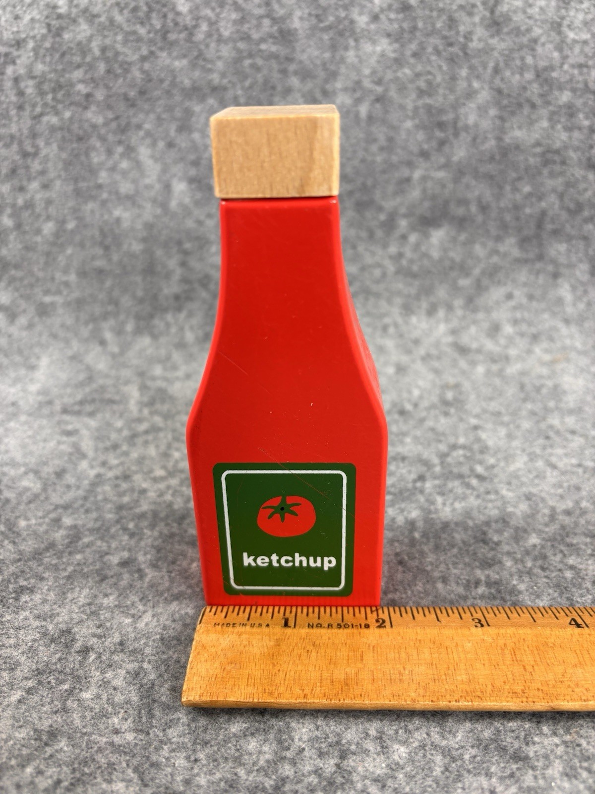 Play Food KETCHUP Wood Wooden Bottle Replacement Pretend Kitchen
