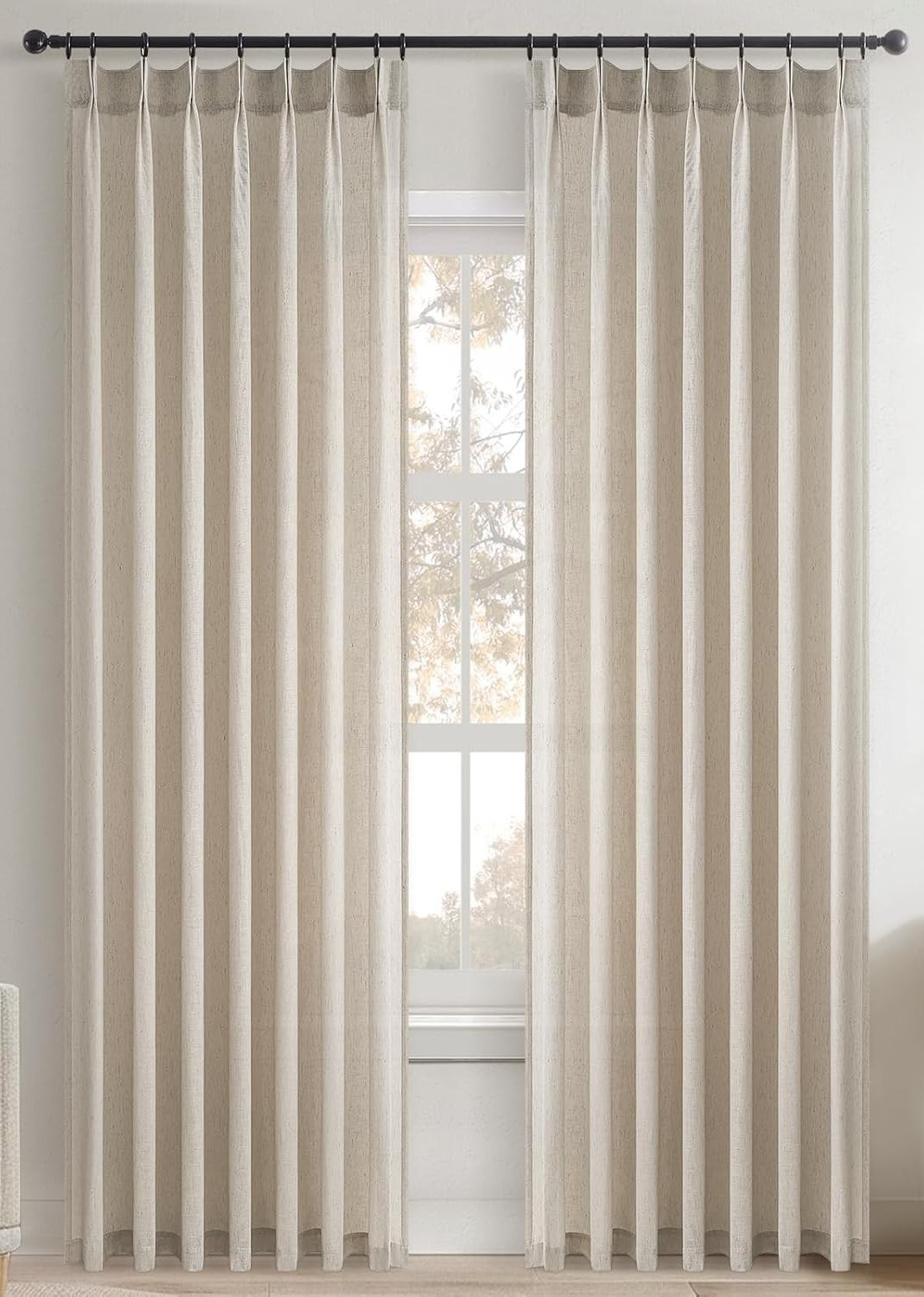 как выглядит Topfinel 40 x 105 Oatmeal Pinch Pleat Semi Sheer Curtain Panels , Cotton Linen фото