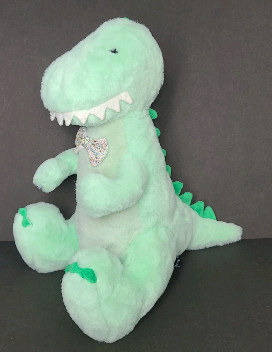 FAO Schwarz Dinosaur Plush 12 Mint Green, Sparkle Bow Tie, EUC