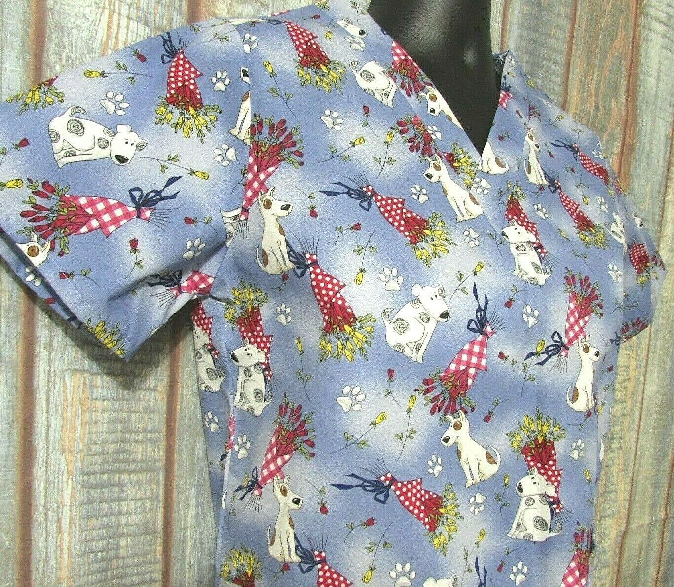 как выглядит NWT Los Angeles Rose Scrub Top Women XS Roses Dogs Valentine Veterinarian USA фото