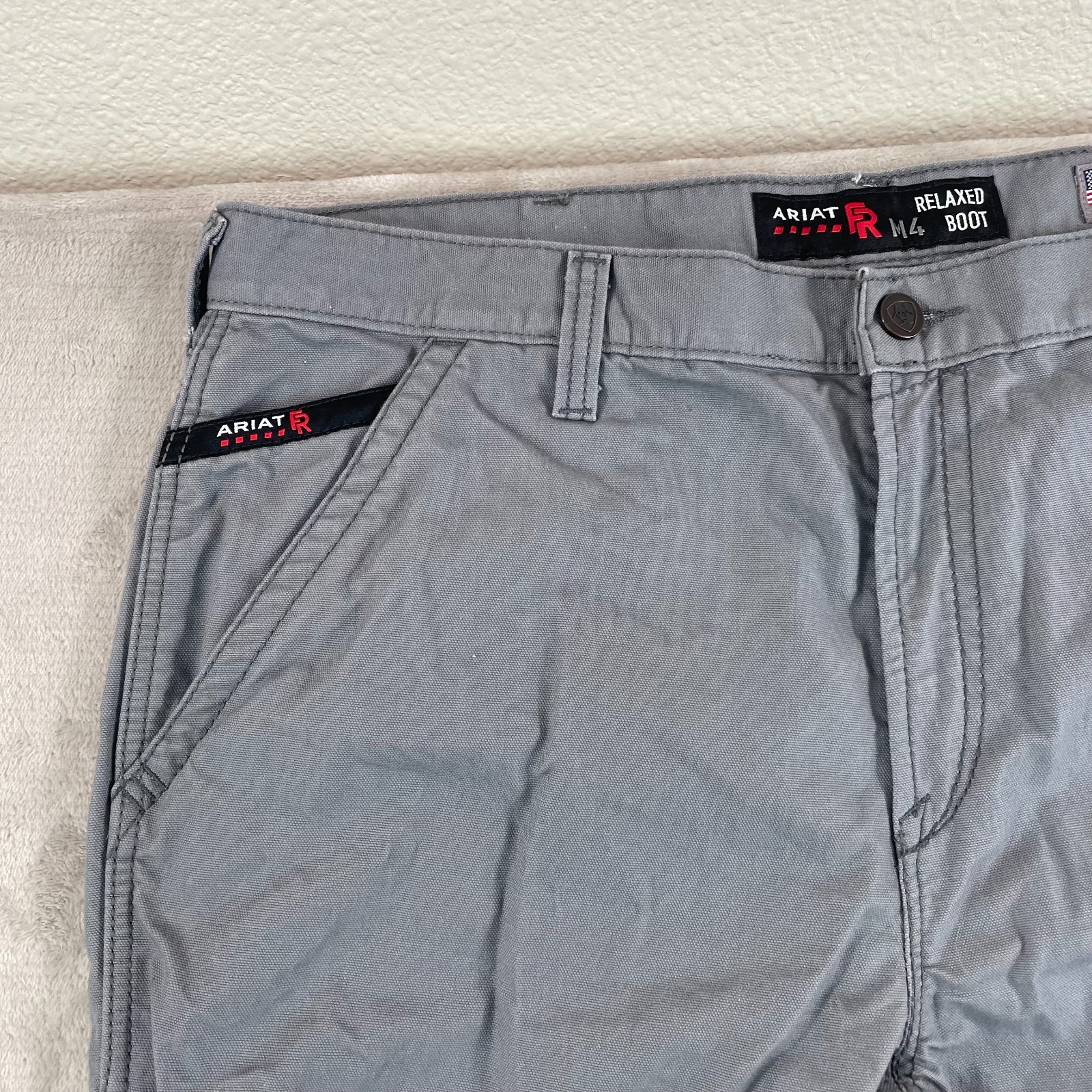 как выглядит Ariat FR M4 Relaxed Workhorse Boot Cut Pants Men Medium Gray 40x31 Tag 38 130 фото