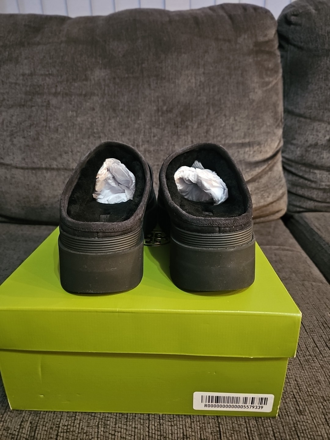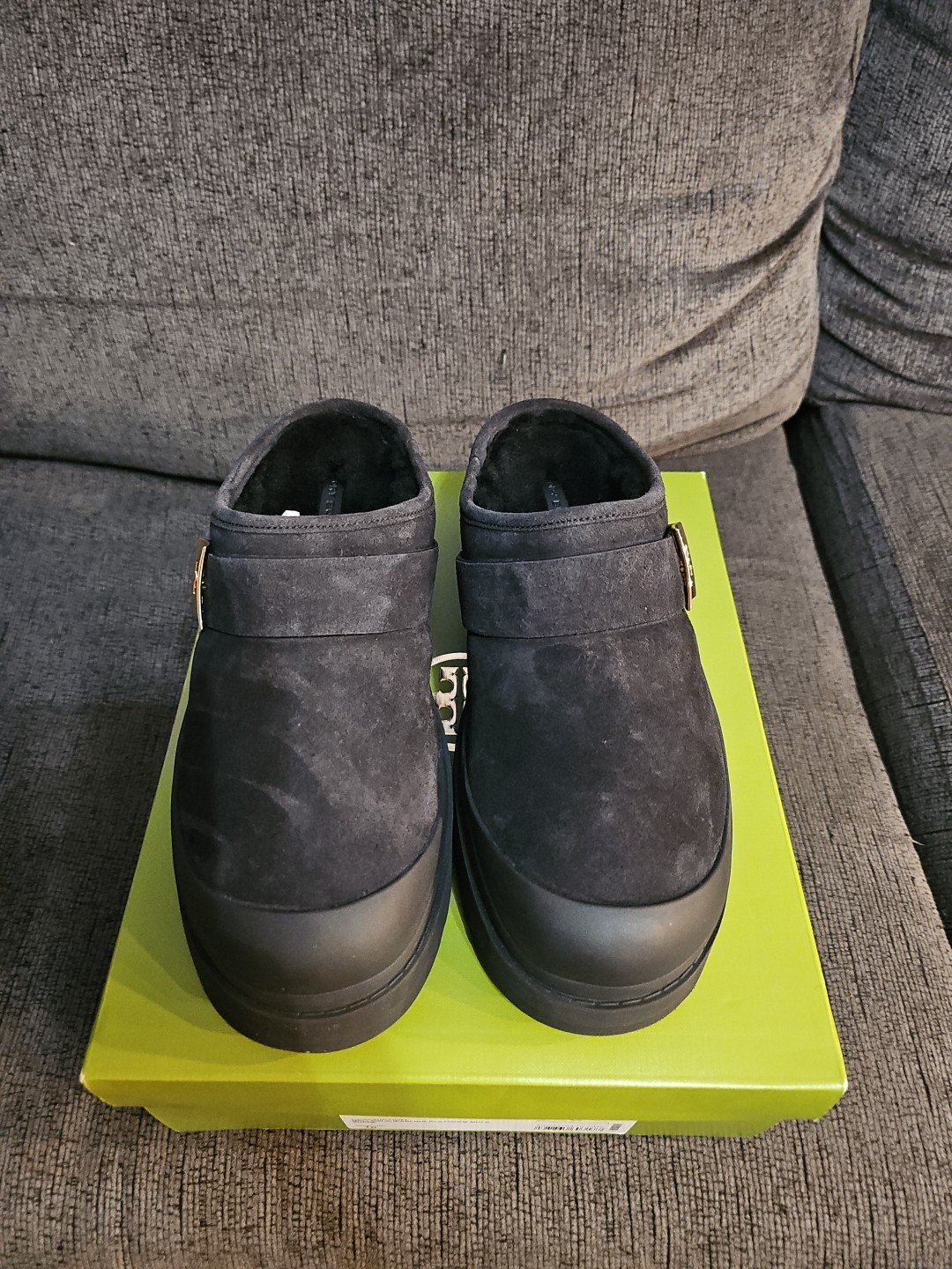 Tory Burch Mellow Shearling Platform Mule Black Suede Size 10