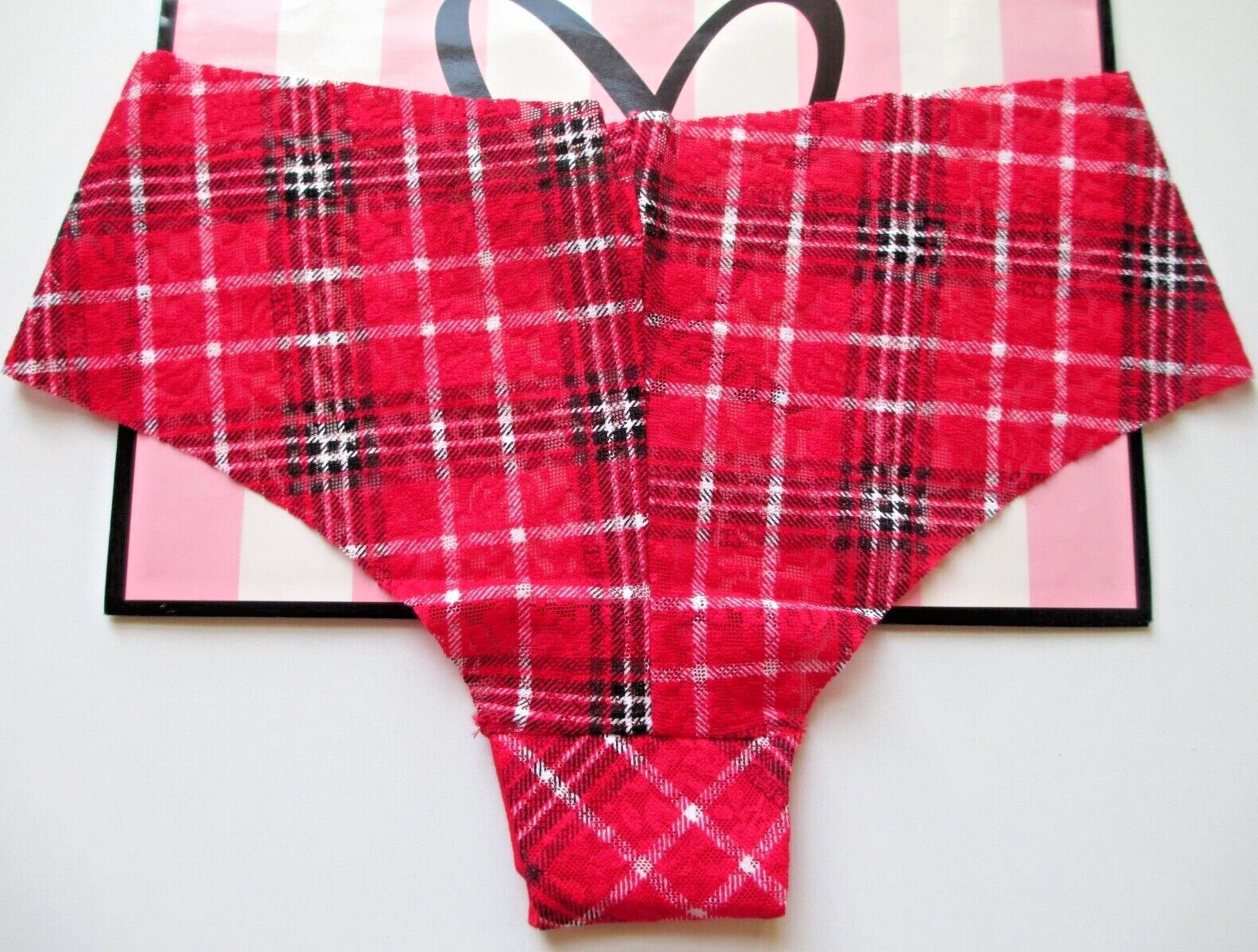 как выглядит VICTORIAS SECRET PINK No Show Lace Cheeky Panty VS Red Plaid S XL NWT фото