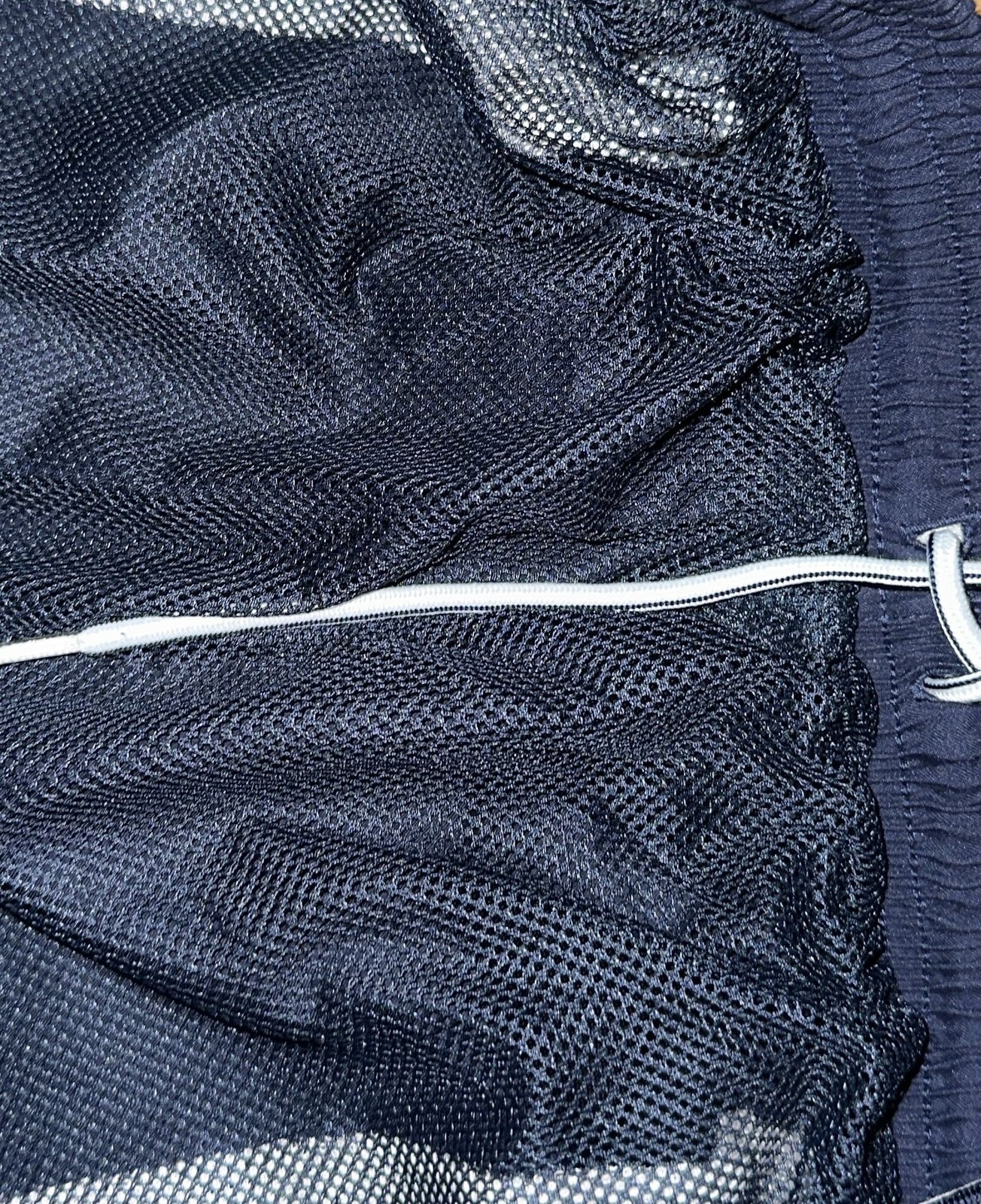 как выглядит Vintage 90s Nike Swoosh Nylon Track Pants Navy Blue Mesh Lined фото