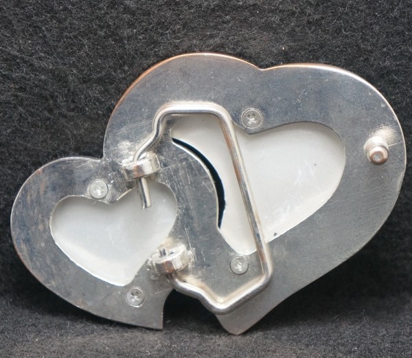 XD29145 REALLY NICE VINTAGE 1970s TWO FLORAL HEARTS MENS FASHION BELT BUCKLE