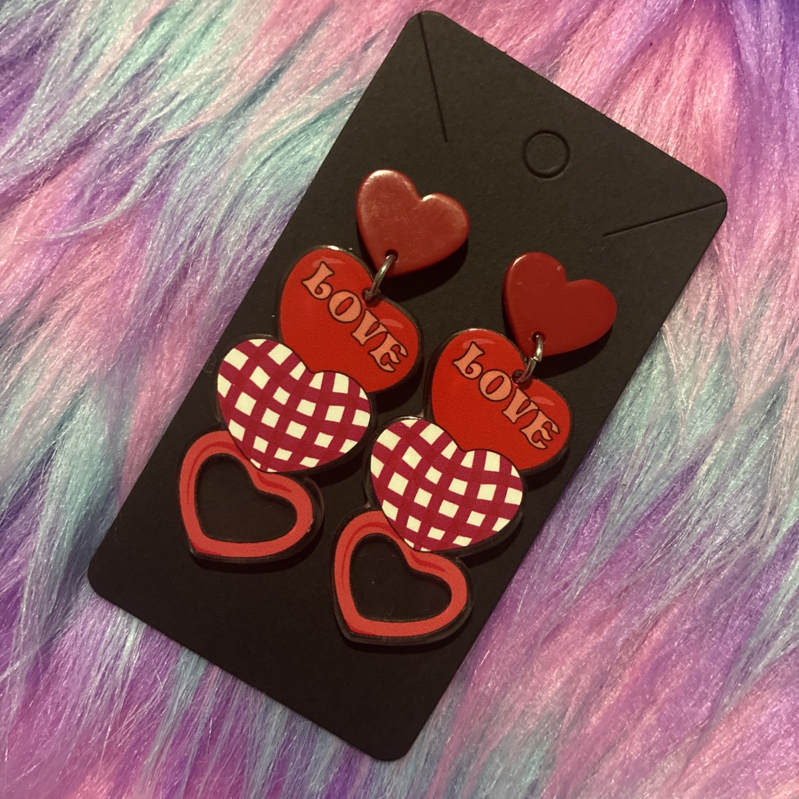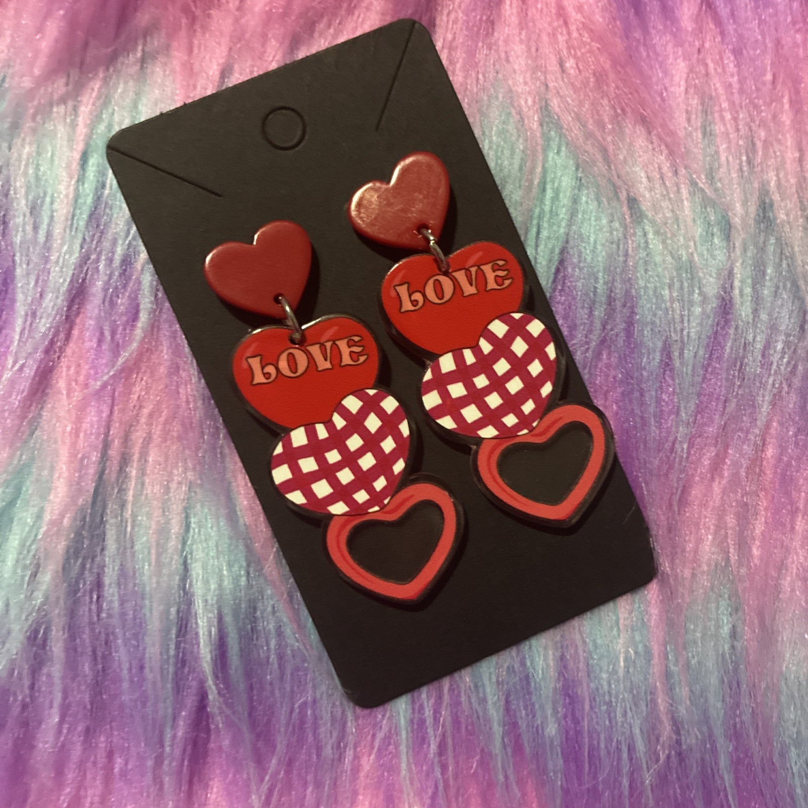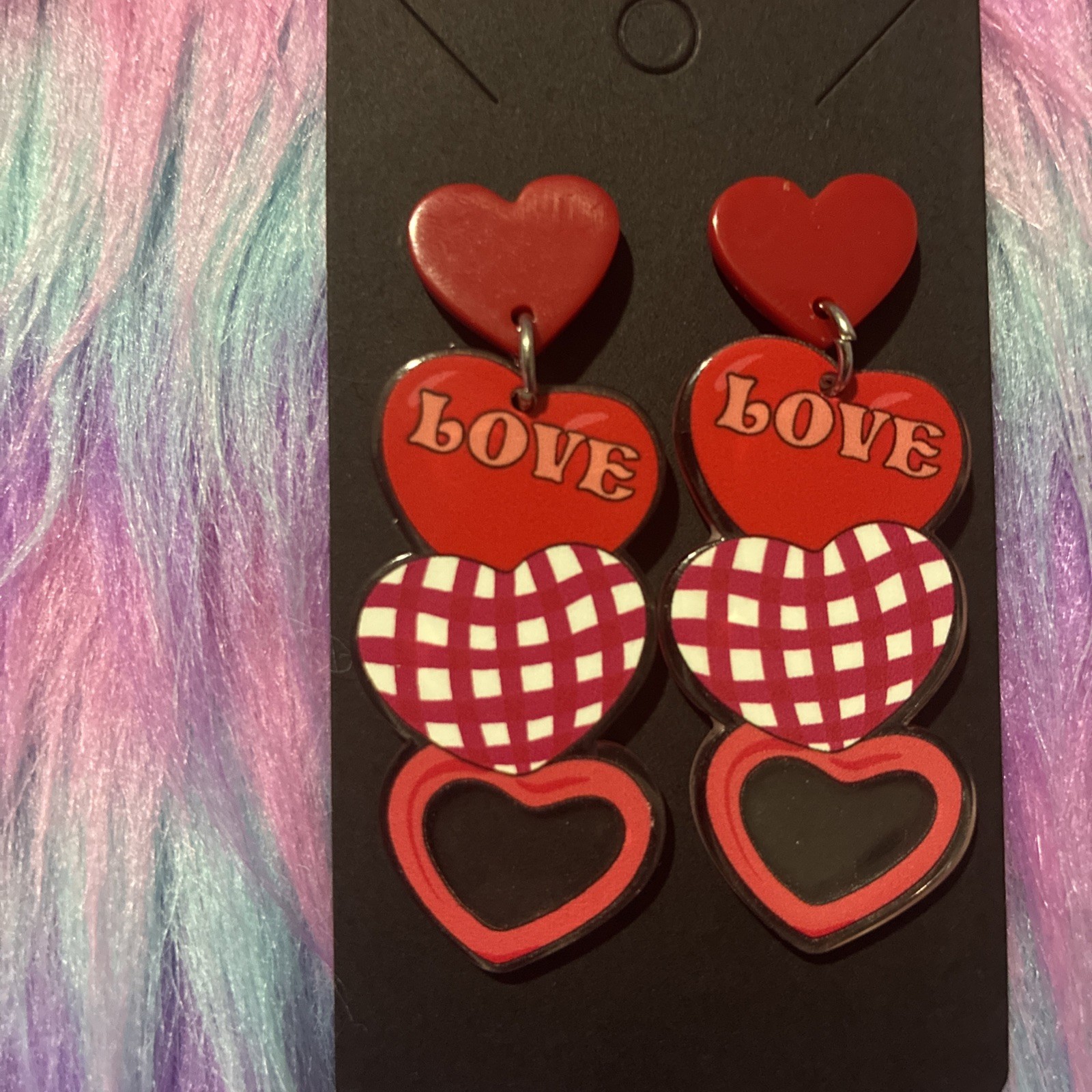 Women s Heart Shaped Acrylic Earrings. Valentine, Lovers, Light Weight. Festive