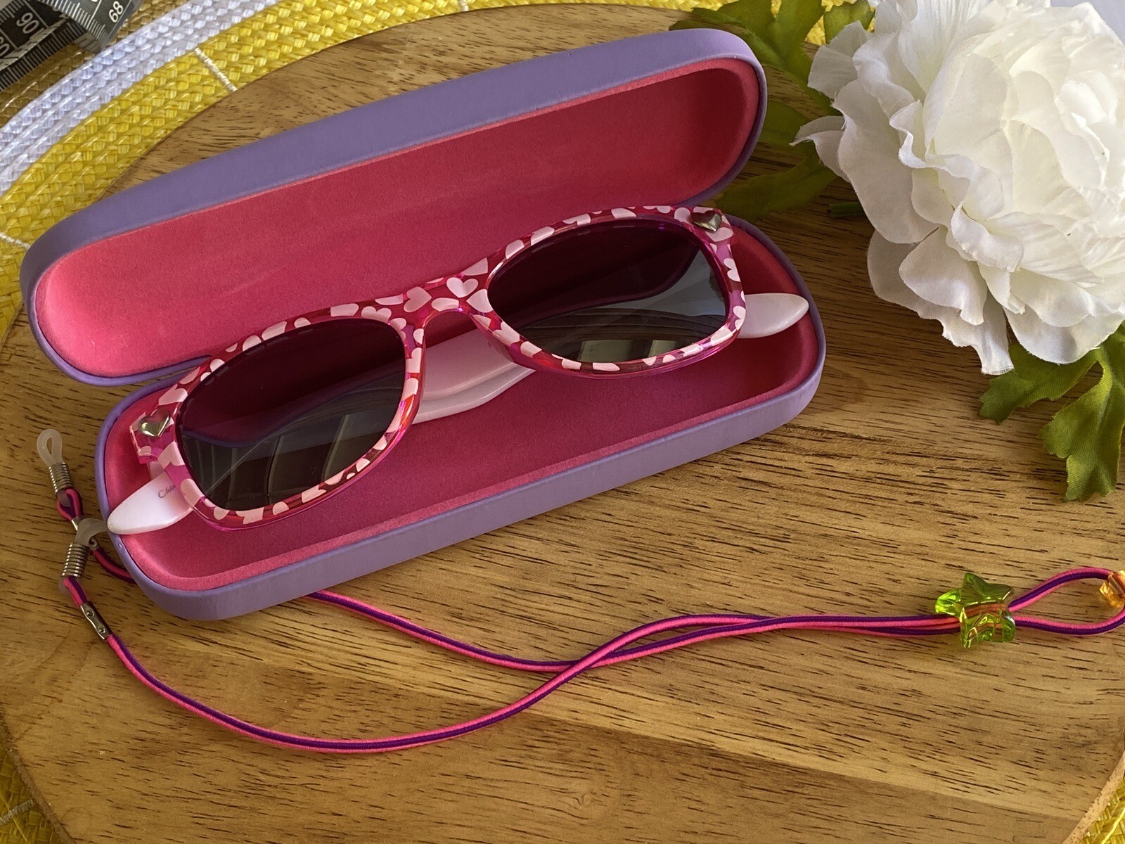 Young Girl Polarized Darla Sunglasses For Kids Pepper's Brand Pink White Hearts