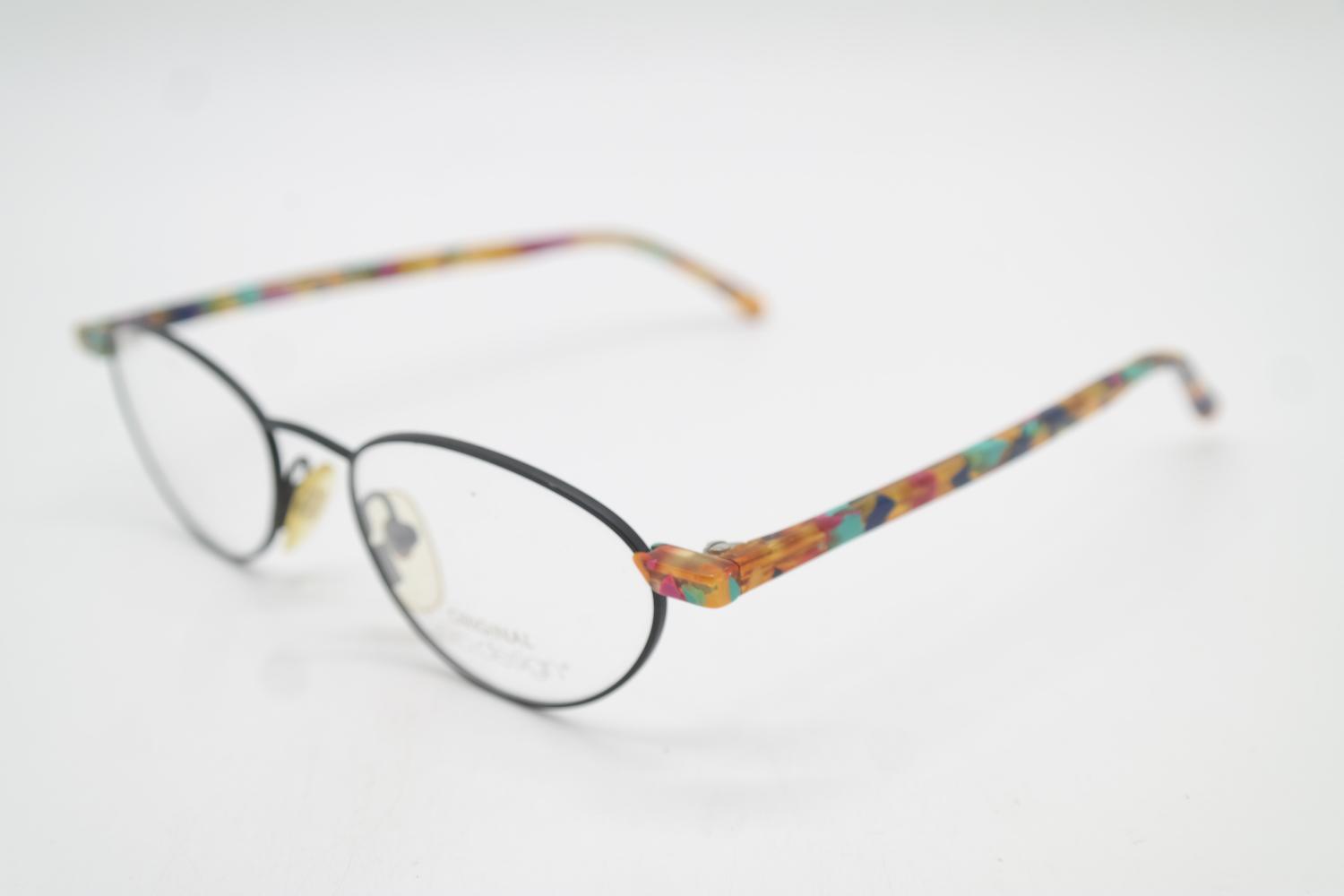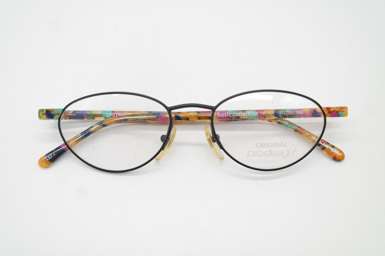 Vintage Glasses Pro Design Denmark P 424 Black Multicolored Oval Glasses Frame