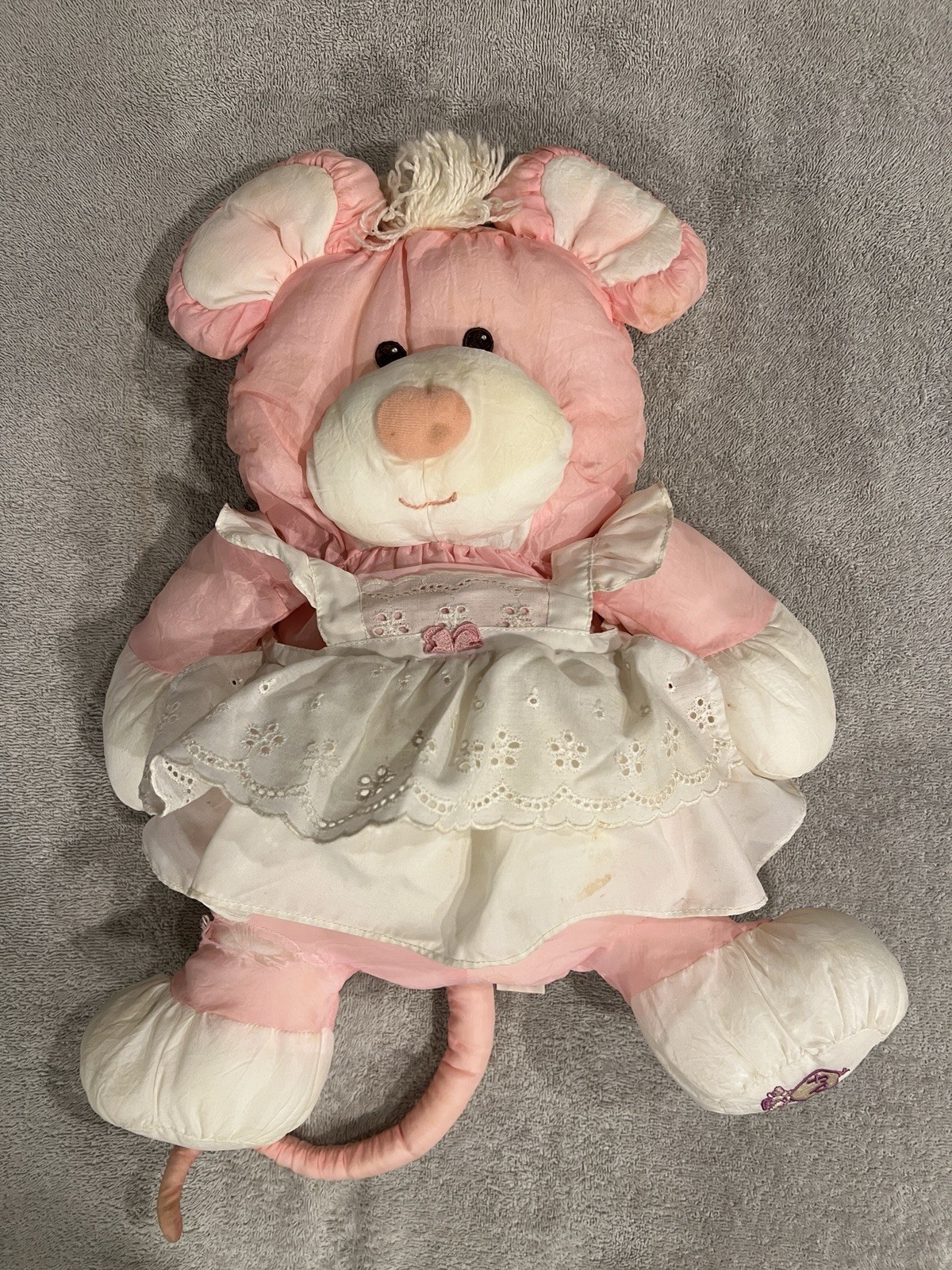 Fisher Price Mouse Puffalump Plush Pink White Dress Vintage 1987 8013 Stuff Toy