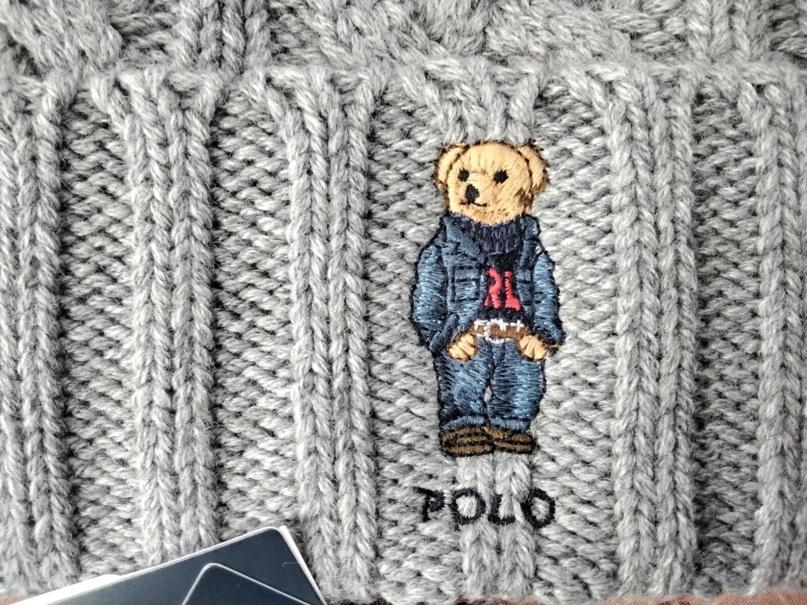 как выглядит Polo Ralph Lauren Cable Knit Bear Beanie Gray Mens NWT фото