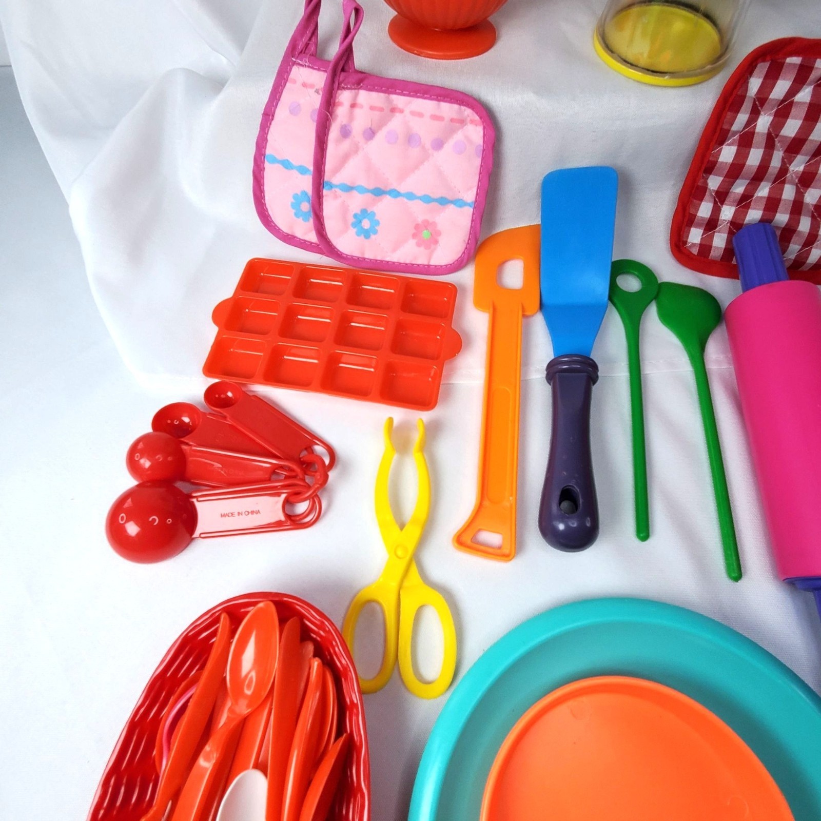 Vintage 41-Piece Kids Plastic Kitchen Play Set W/ Utensils Cups Plates Ice Tray