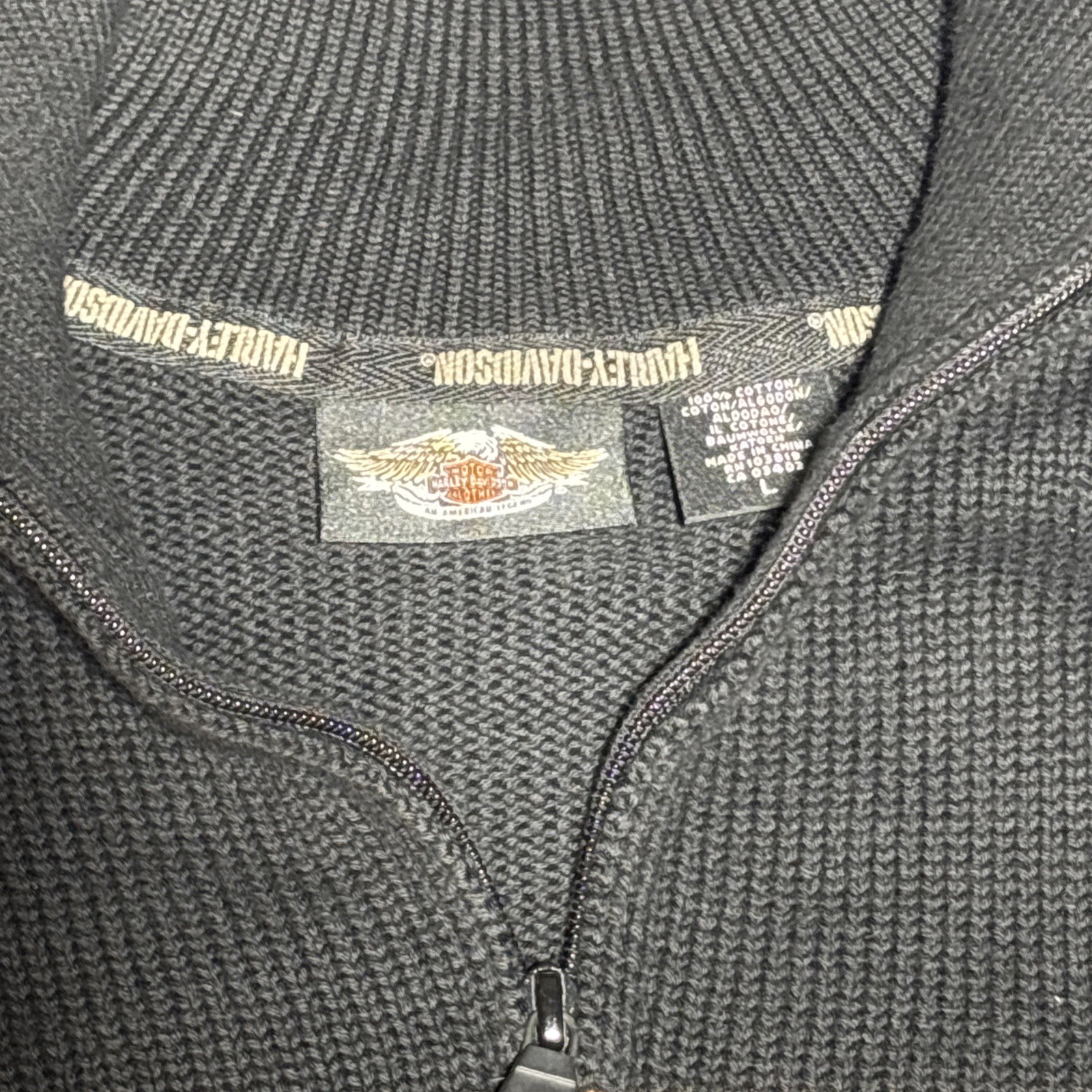 как выглядит Mens Black Harley Davidson 1/4 Zip Pullover Sweater Large фото