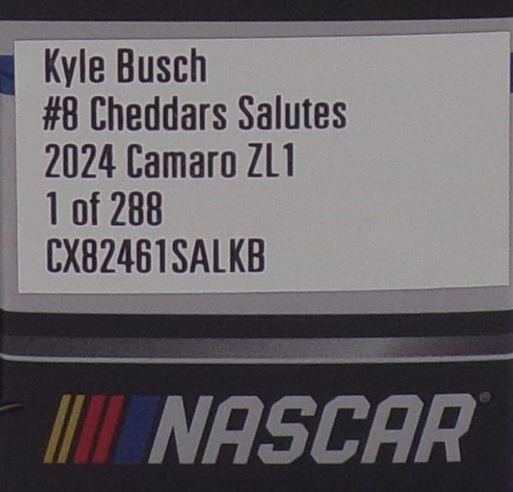 как выглядит 2024 KYLE BUSCH 8 Cheddars Salutes 1:64 Diecast Chassis In Stock фото