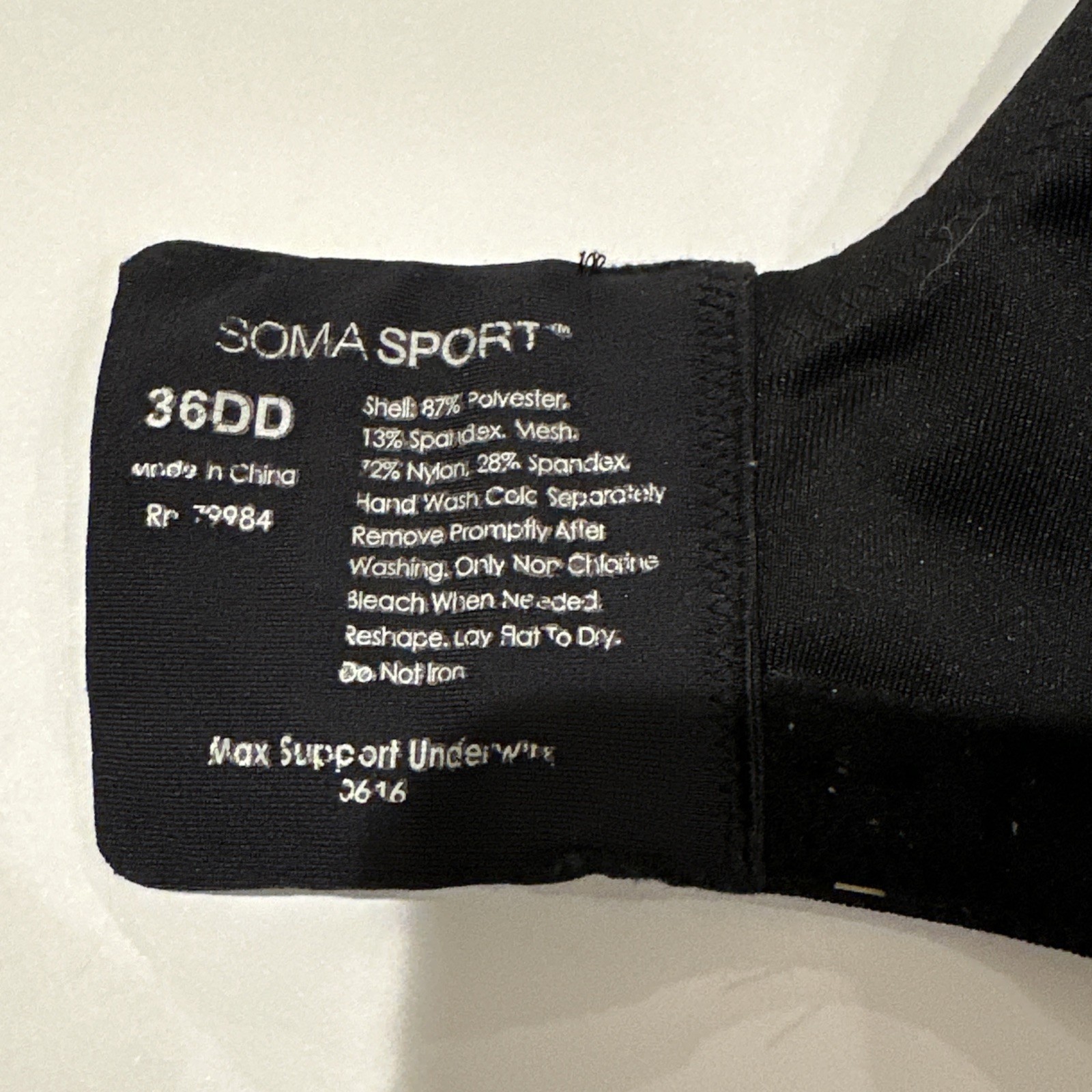 Soma Sport 36DD Sports Bra Black Max Support Underwire Back Closure