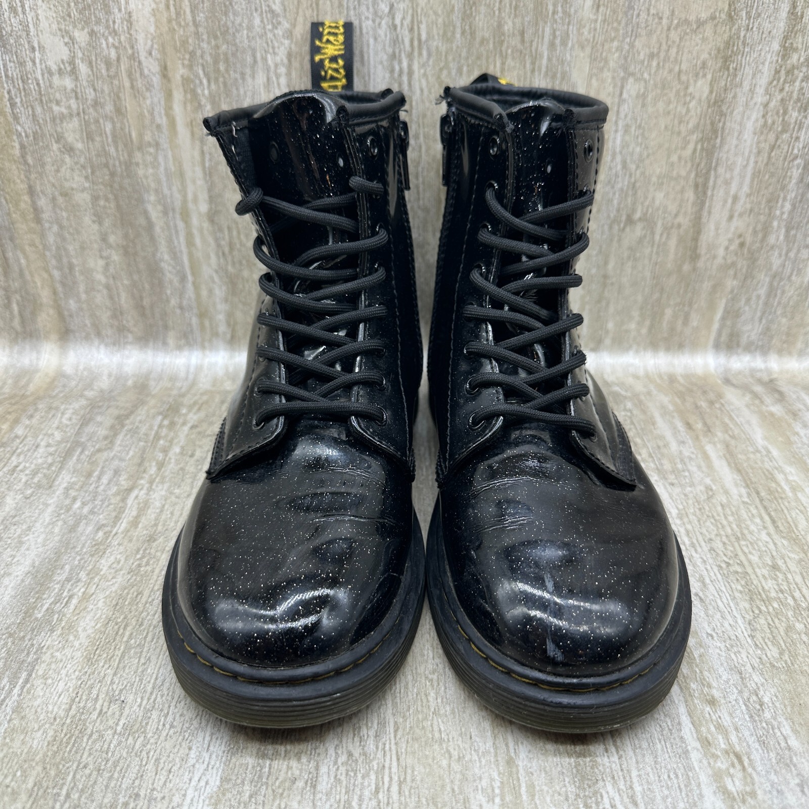 Dr. Doc Martens 1460 Black Patent Leather Cosmic Glitter Sparkle Boots Kids 3