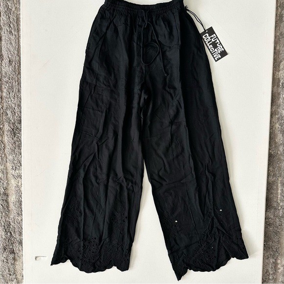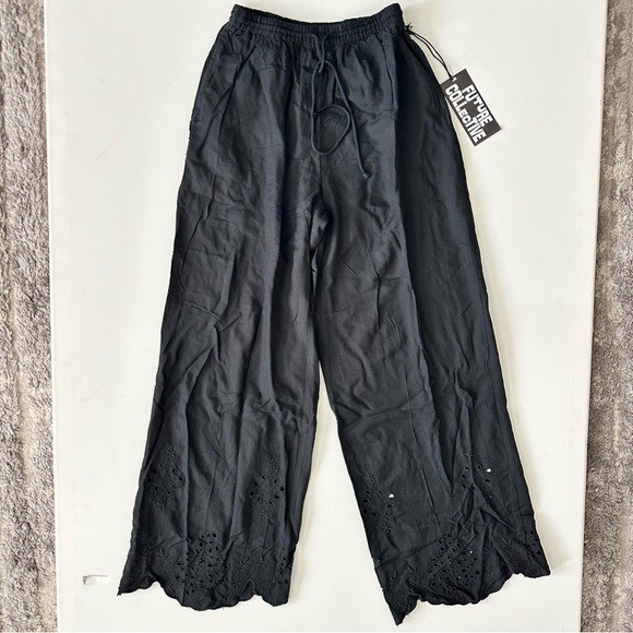 Future Collective Women's High-Rise Wide Leg Eyelet Pull-on Pants Size S