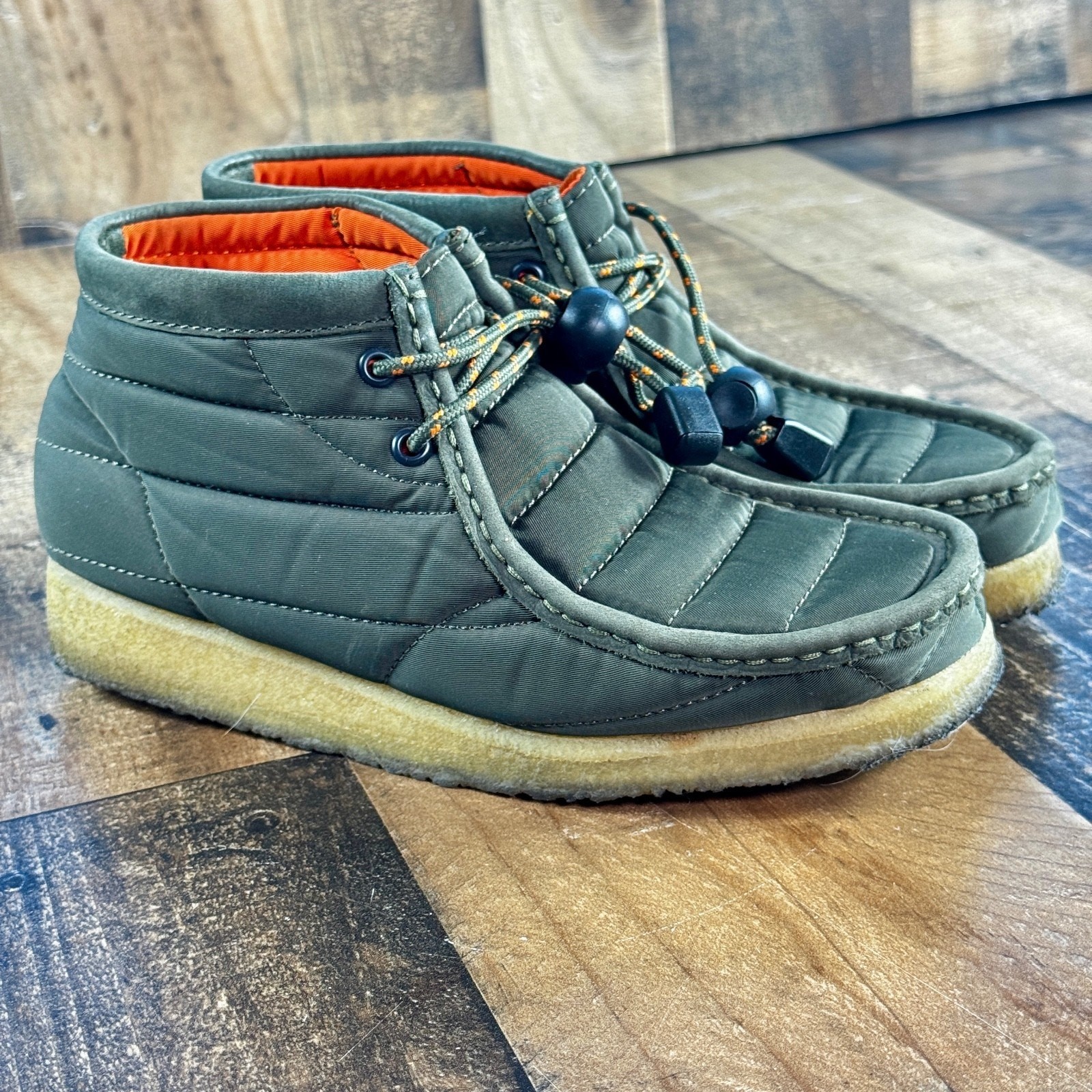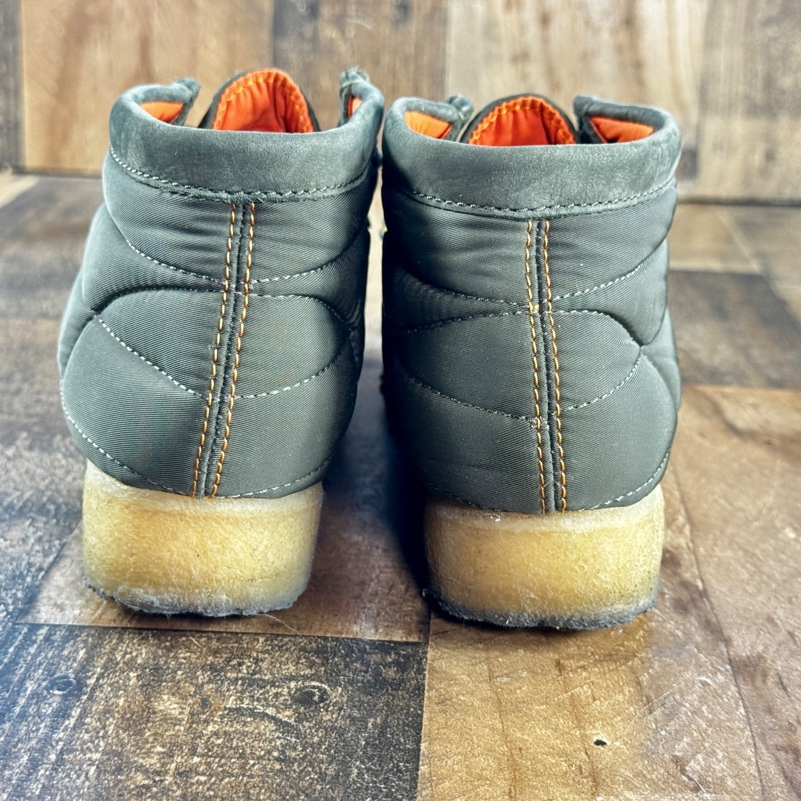 CLARKS Olive Green Nylon Quilted Wallabee WOMENS Size 6 EX Cond Chukka Boots