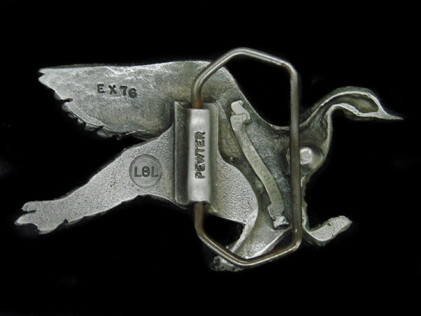 UC17136 NOS VINTAGE 1978 FLYING DUCK PEWTER BELT BUCKLE