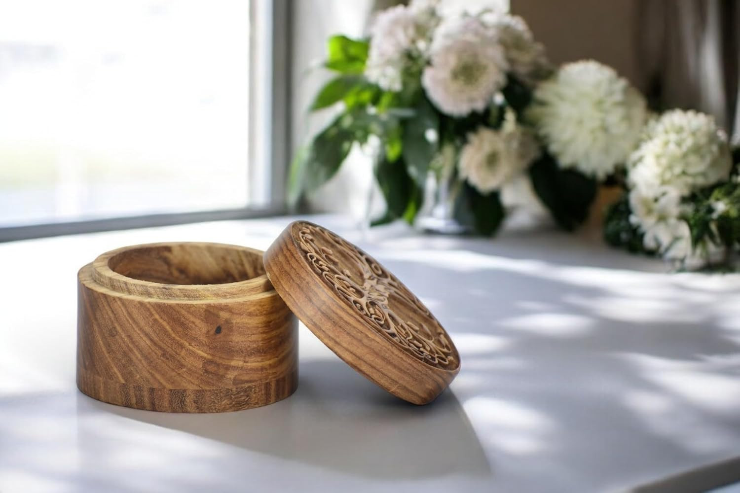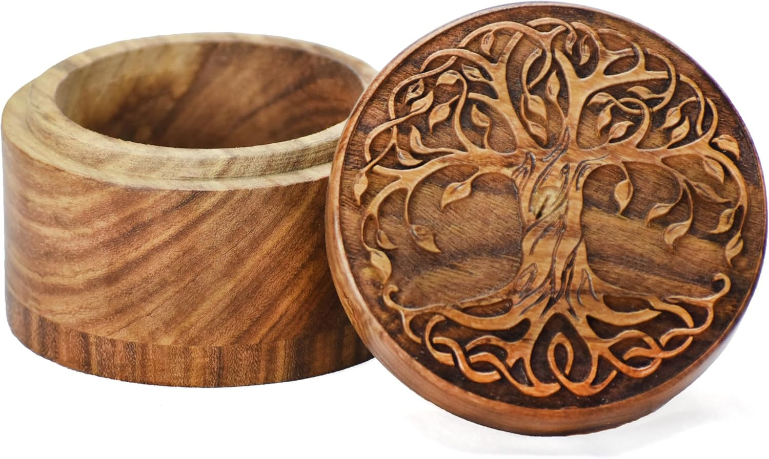 • Small Wooden Urn for Human Pet Ashes Handcrafted Tree of Life Mini Memorial