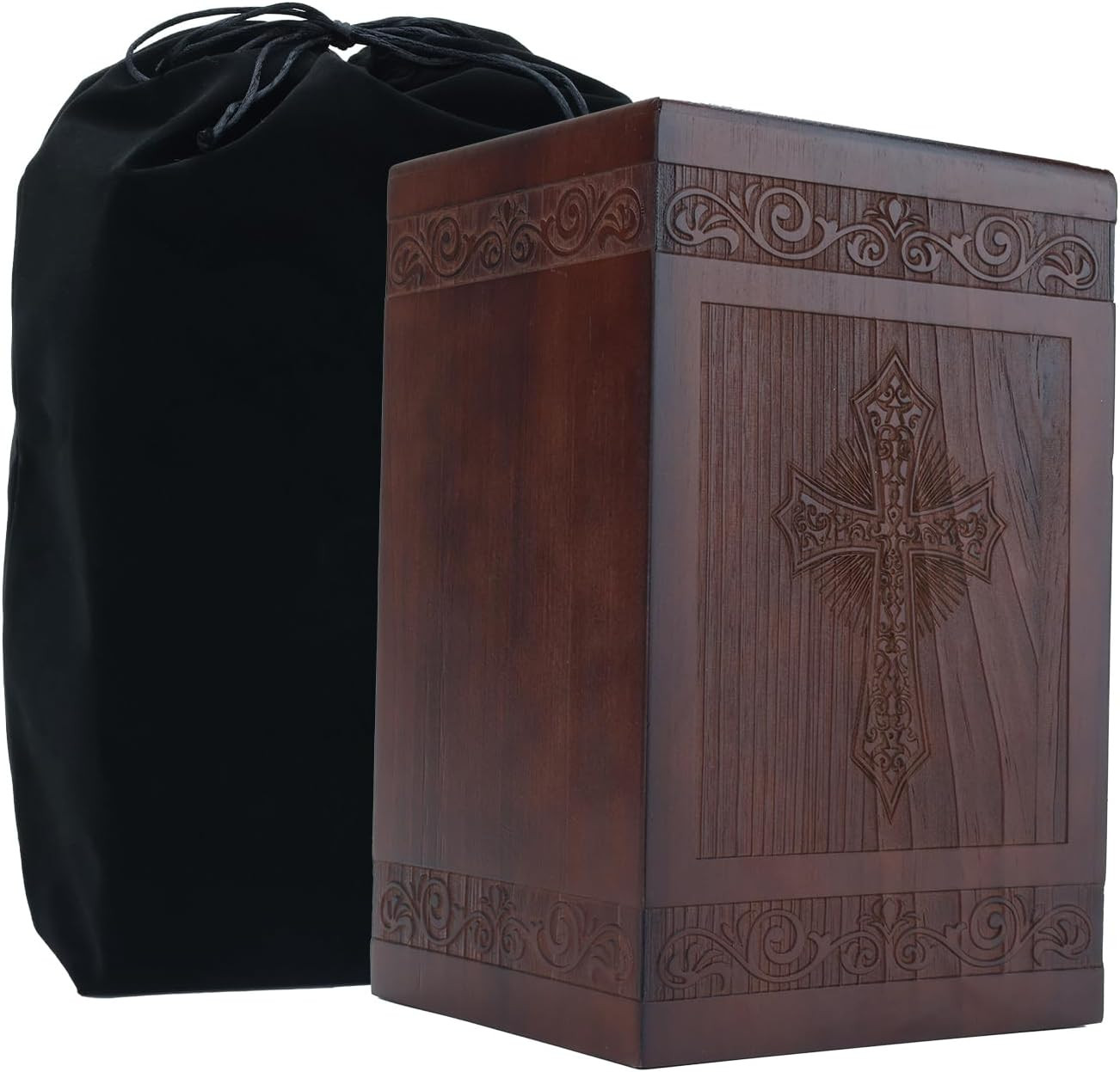 • Decorative Cremation Urns for Human Ashes Adult Male Female, Wooden Carved Cross