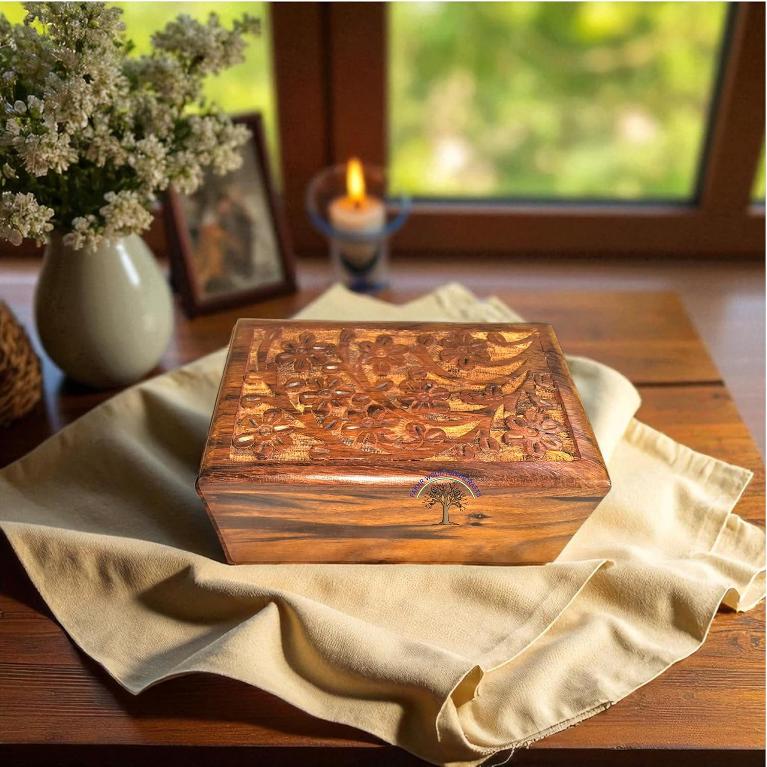• Wooden Urn Box for Human Pet Ashes Decorative Cremation Urn Engraved Memorial