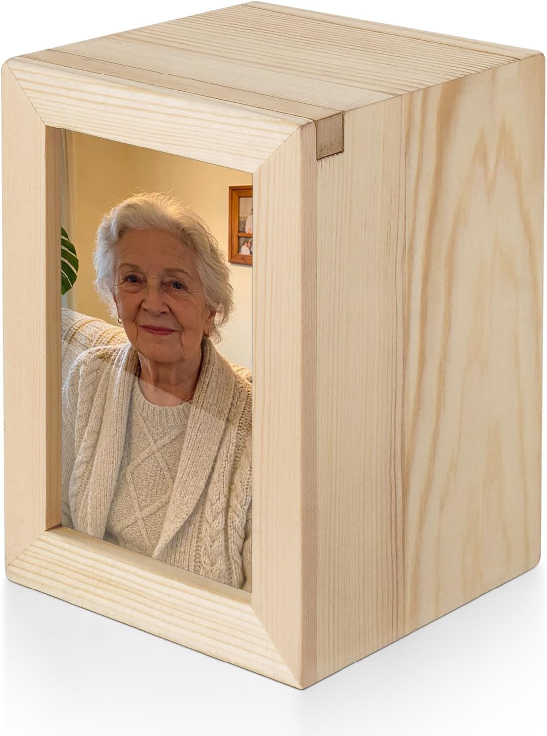 • Small Wooden Keepsake Box Urn for Human Ashes, 4.92 Inches Decorative Urn Box wi