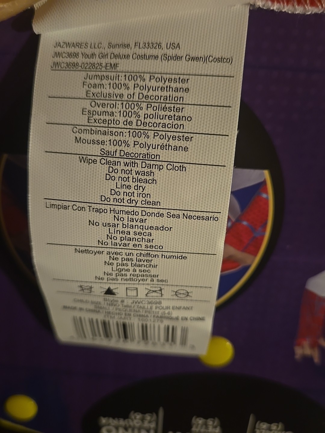как выглядит Across The Spider Verse Spider Gwen Jumpsuit Child Size 7-8 Girls Costume New фото