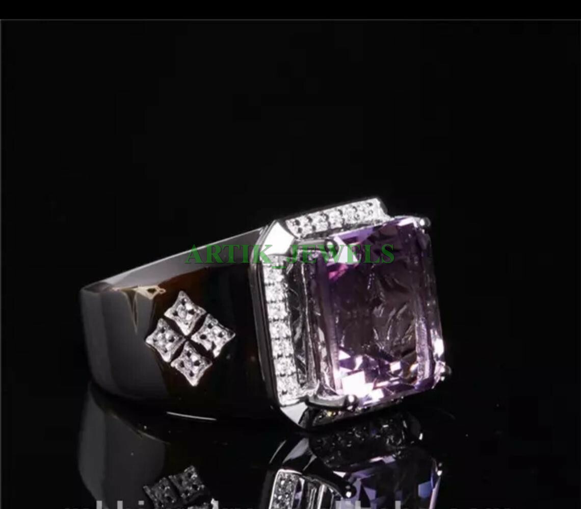 как выглядит Natural Amethyst Gemstone with 925 Sterling Silver Ring for Mens 81 фото