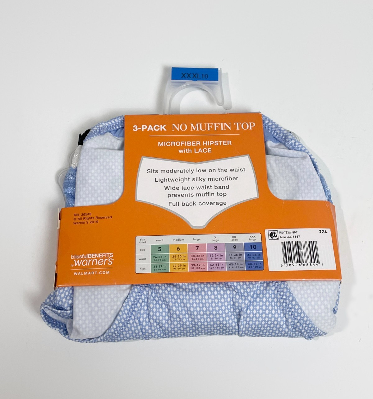 Warner's Blissful Benefits No Muffin Top Microfiber Hipster with Lace Size 10