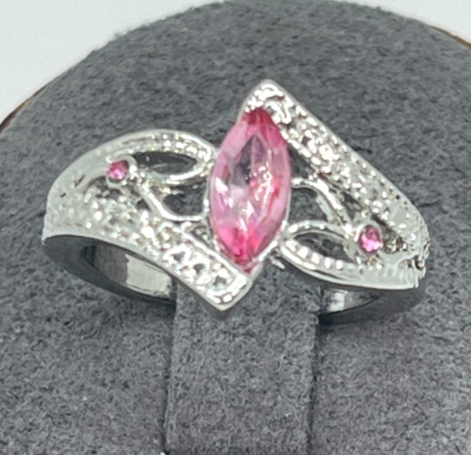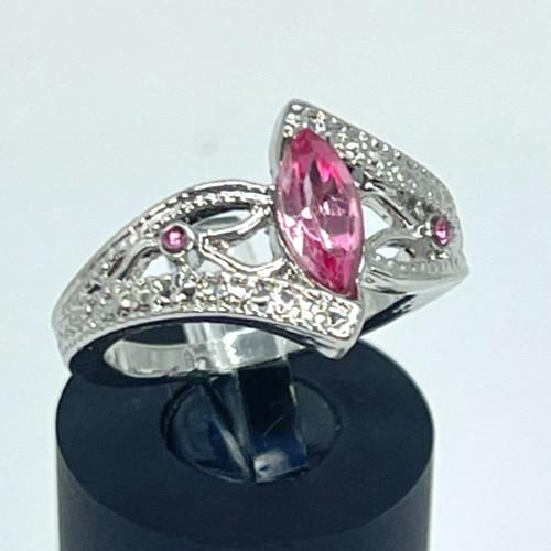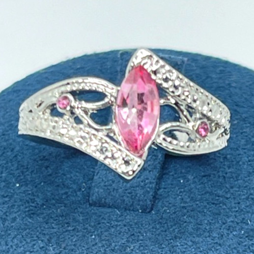 Ring Silver Tone Pink Marquise Cubic Zirconia w/Clear Crystal Accents. Size 6