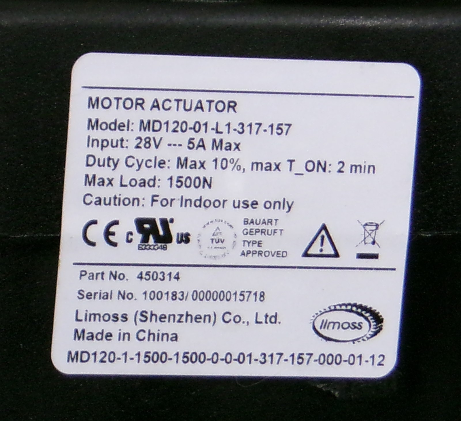 Limoss 450314 Actuator Motor Recliner MD120-01-L1-317-157 w/ Some Power Cords