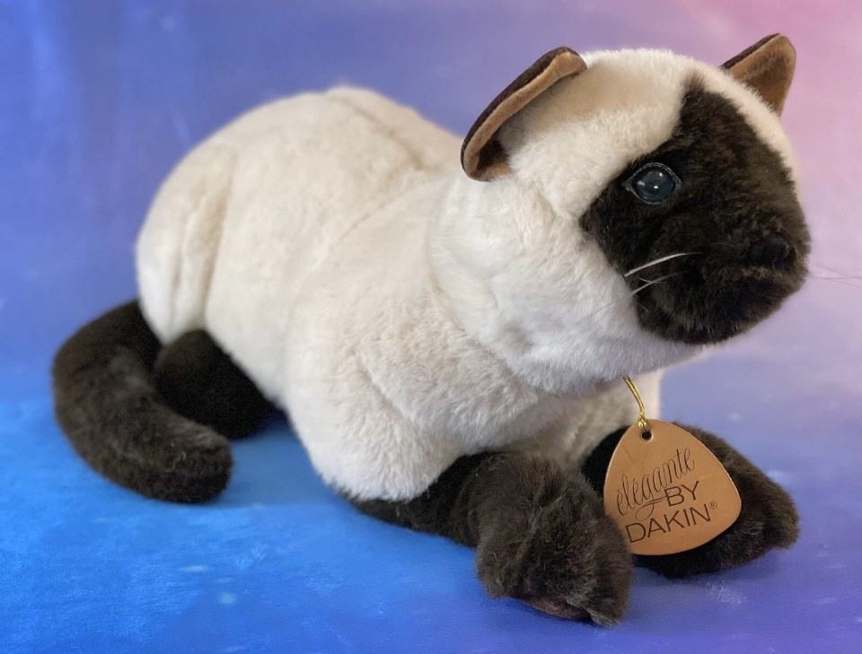 как выглядит 19" Vintage Dakin Elegante Siamese Cat Lying Large Stuffed Animal Plush Blue Eye фото