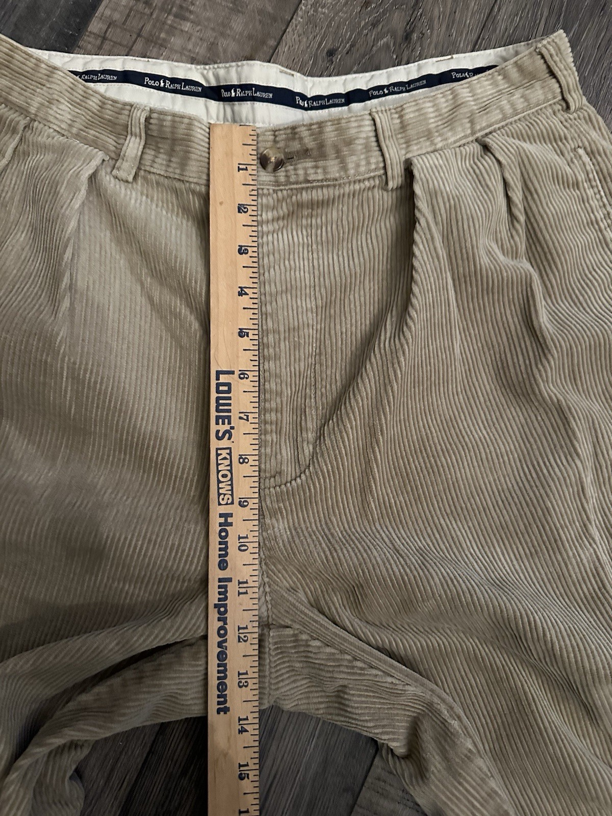 Vintage Polo Ralph Lauren Pants Mens 34x30 Tan Corduroy Pleated Made USA 90s