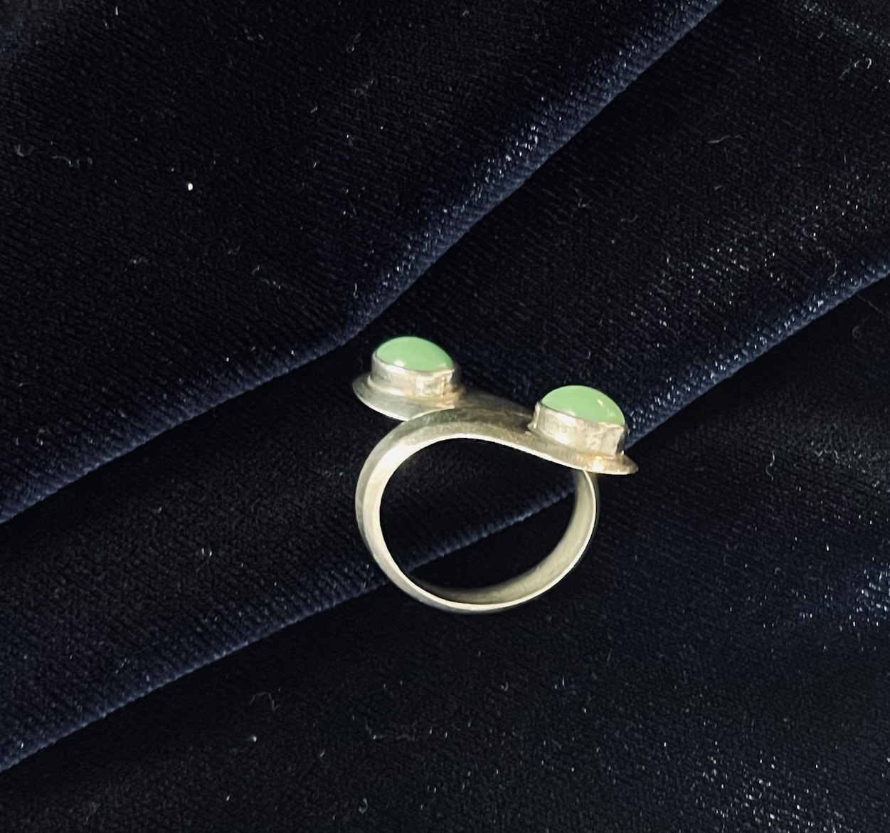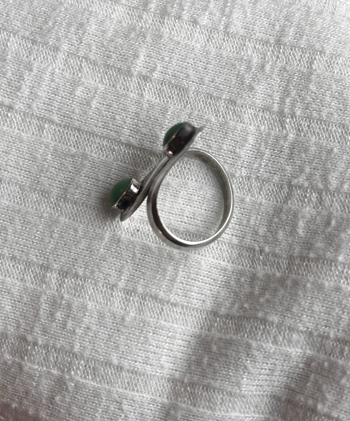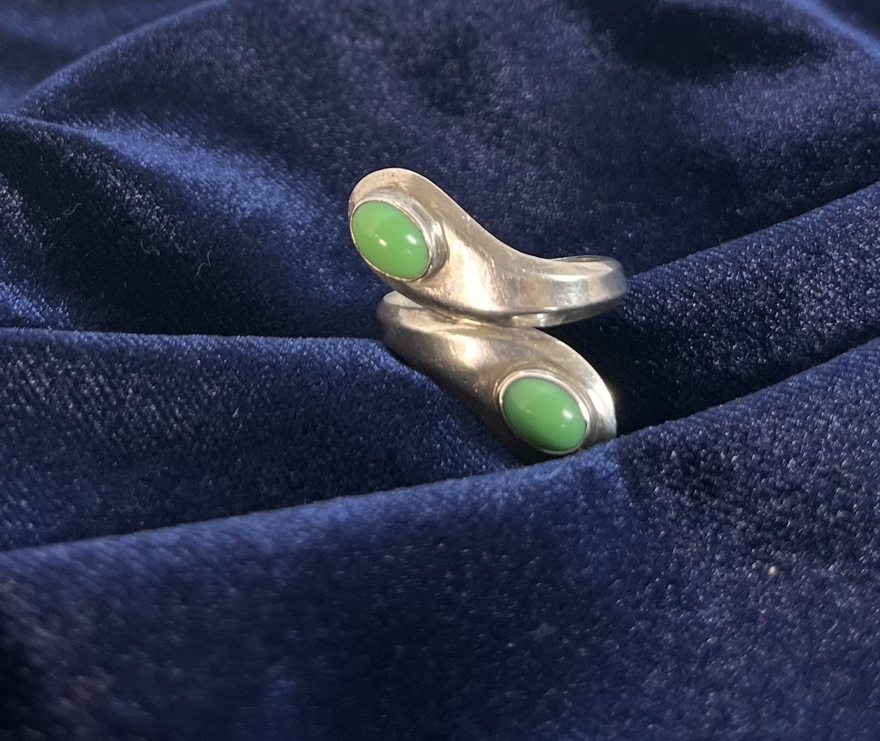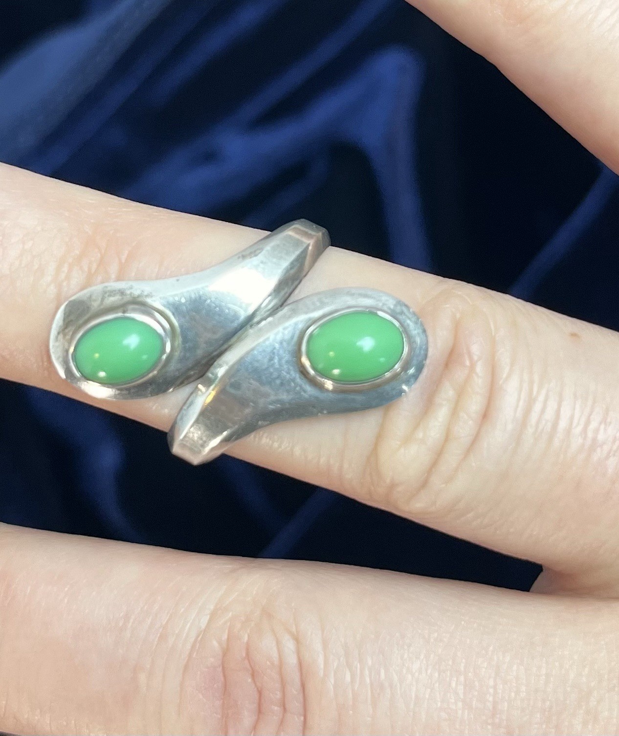 Taxco Mexico 925 Sterling Silver Green Stone Bypass Ring Size 6.5 Modernist
