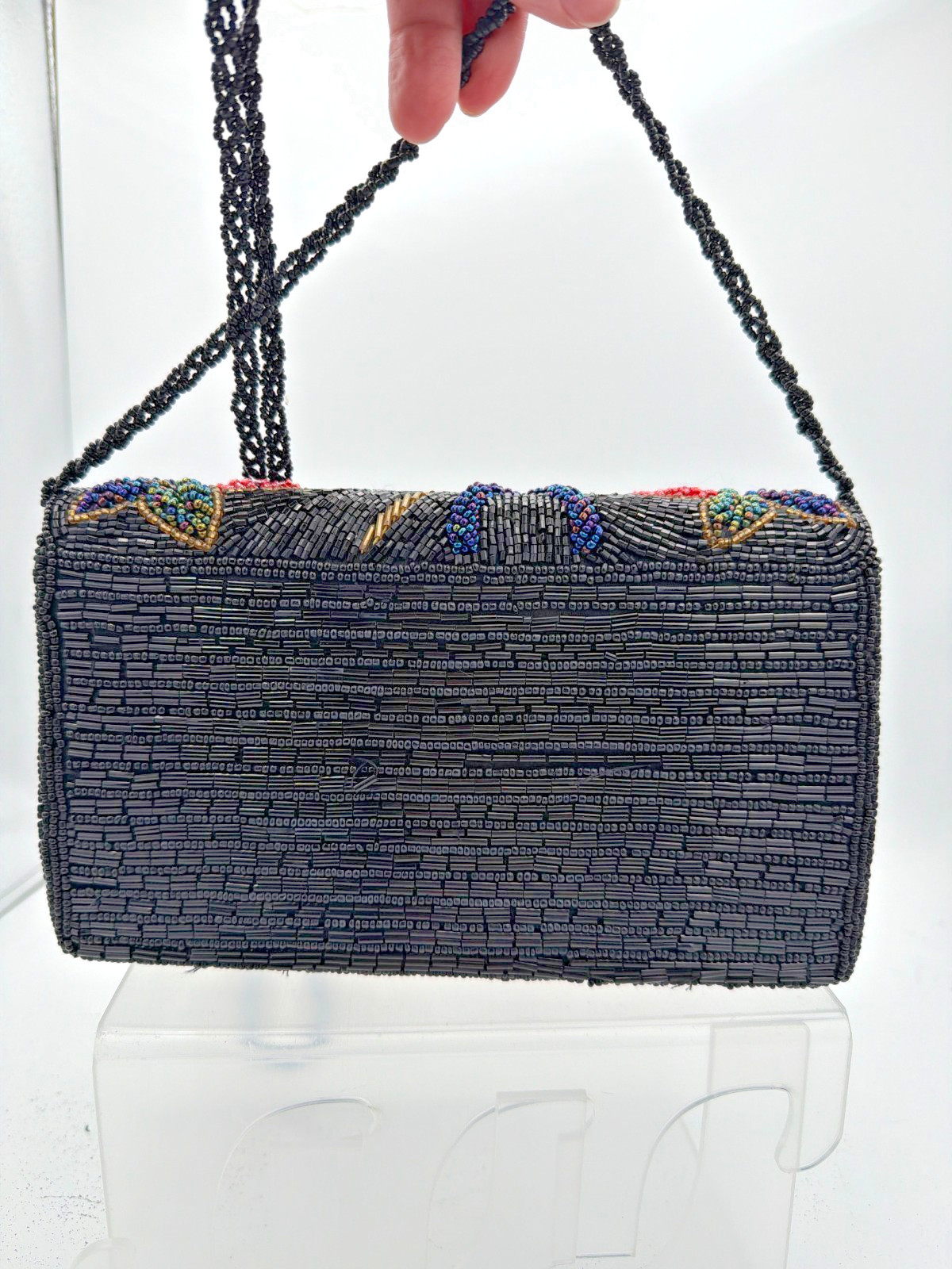 как выглядит Black Beaded Floral Shoulder Bag Evening Purse Long Strap Vintage Style фото