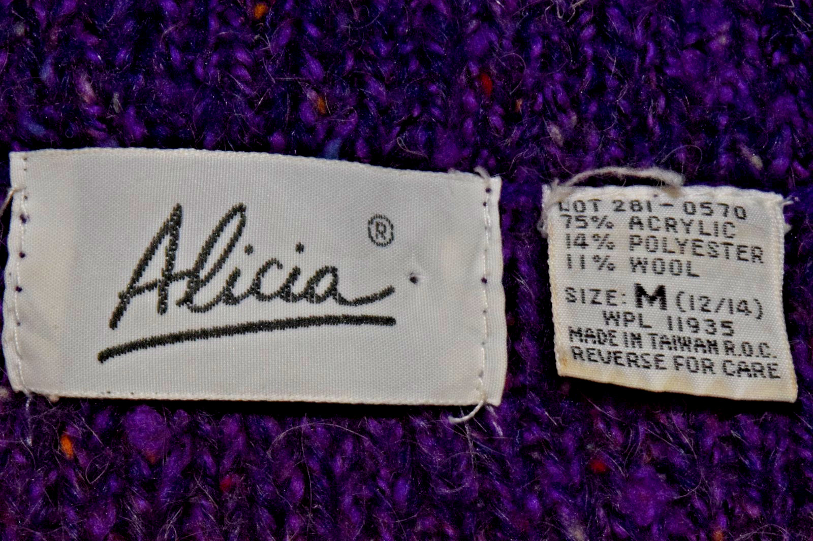 Vintage Knit Sweater Alicia Violet Purple Size M 80s Colorful Donegal Weave Nubs