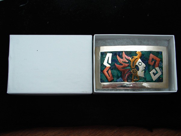 как выглядит QF13162 NOS VINTAGE 1970s WARRIOR SOUTHWESTERN DESIGN ART BELT BUCKLE фото