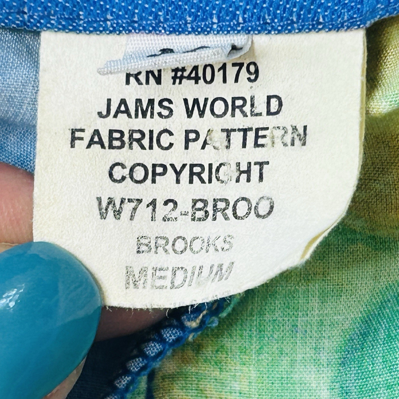 Jams World Vtg Hawaiian 2PC Set Capri Cropped Floral Pants M Blue S/S Boxy Top L