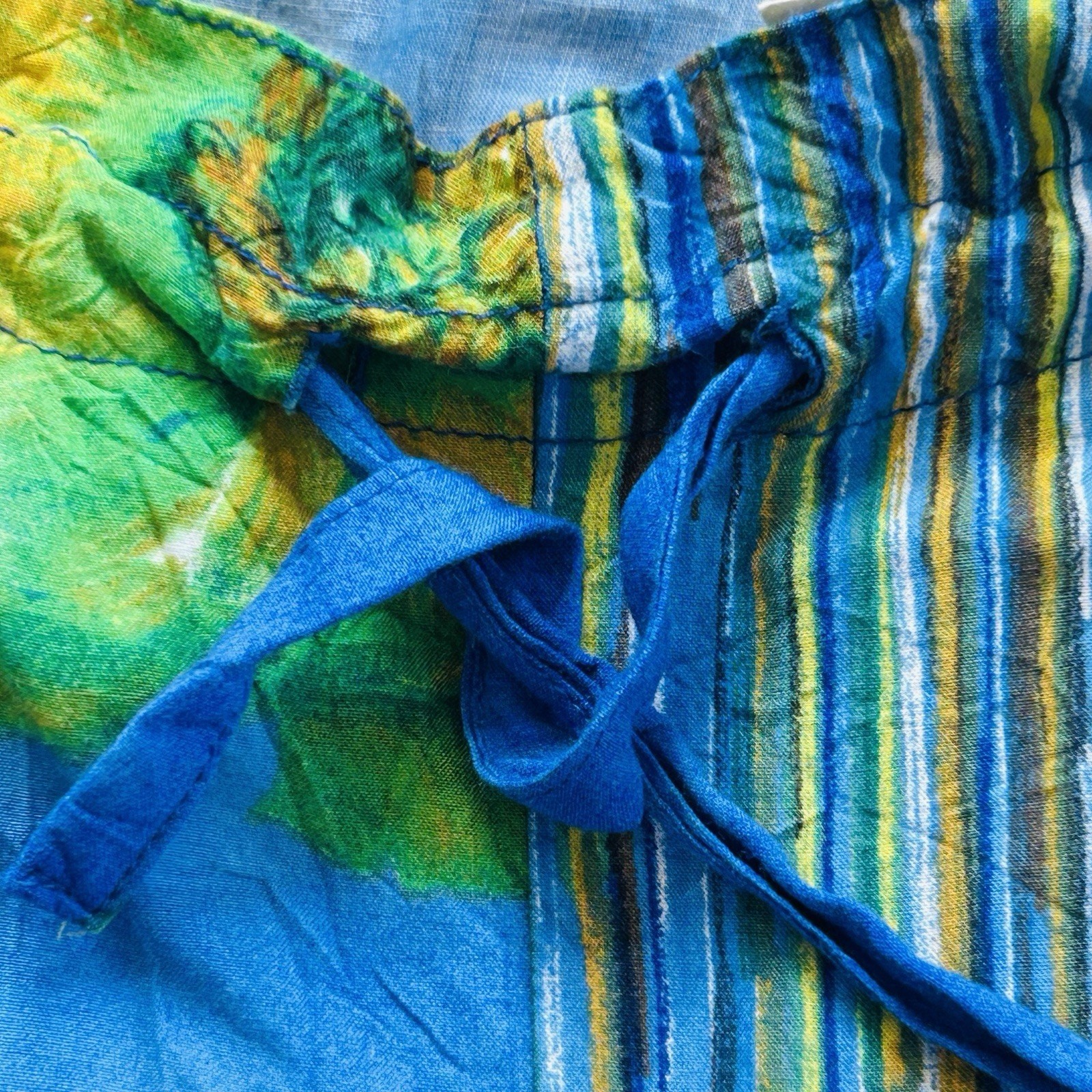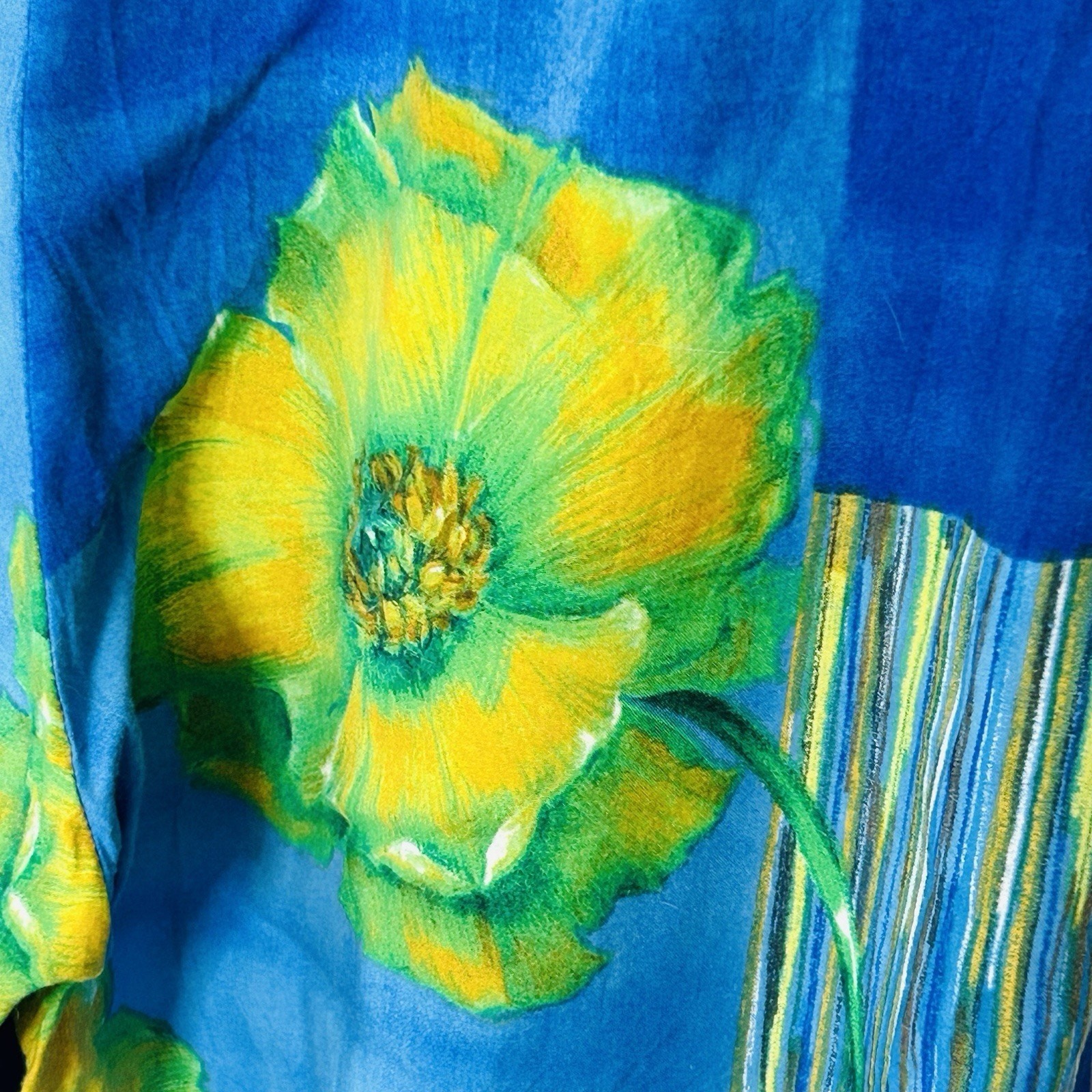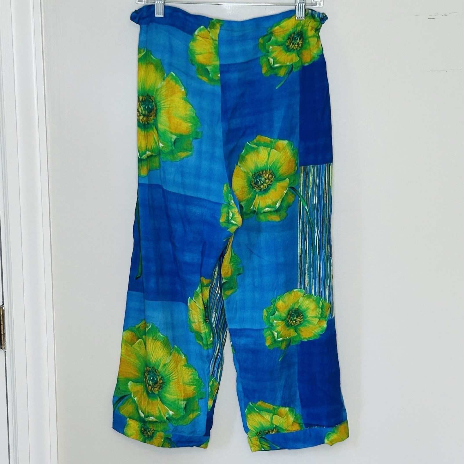 как выглядит Jams World Vtg Hawaiian 2PC Set Capri Cropped Floral Pants M Blue S/S Boxy Top L фото