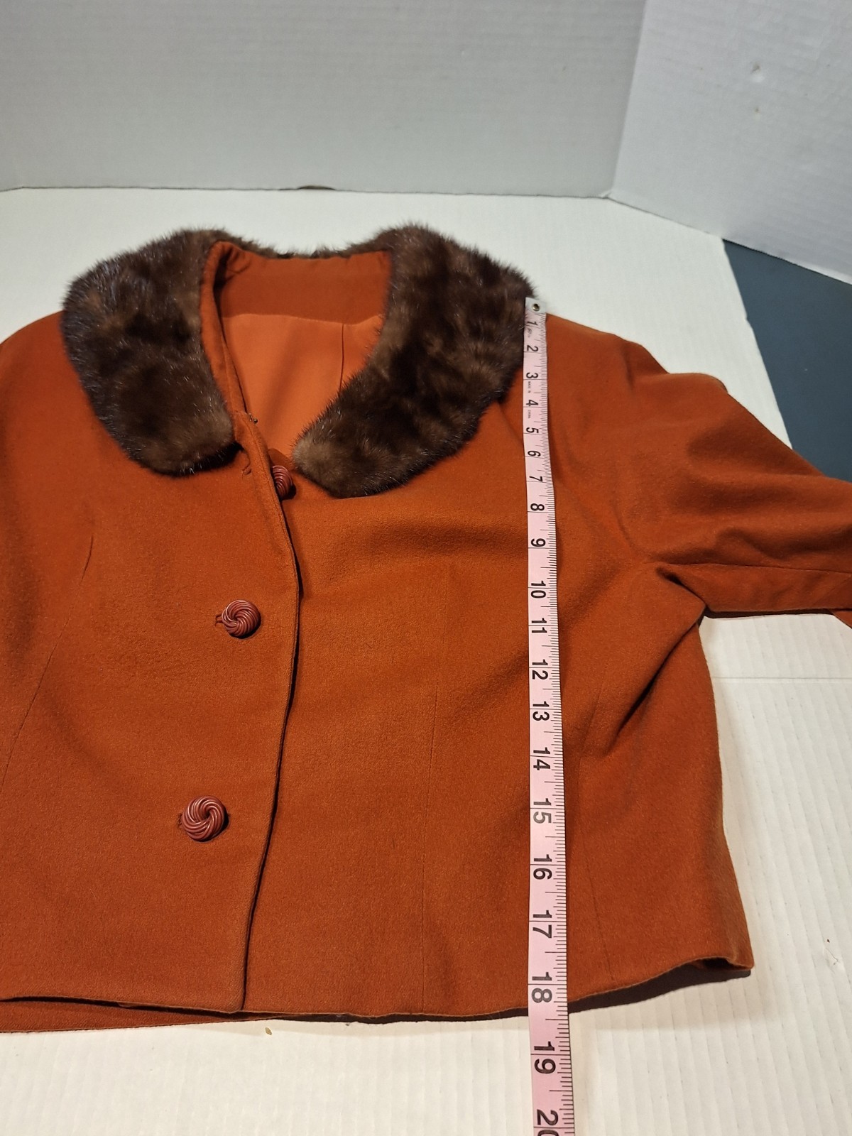 как выглядит VTG 1950s Wool Skirt Suit Set, Miss Small, Orange, Faux Fur Collar, Geek фото