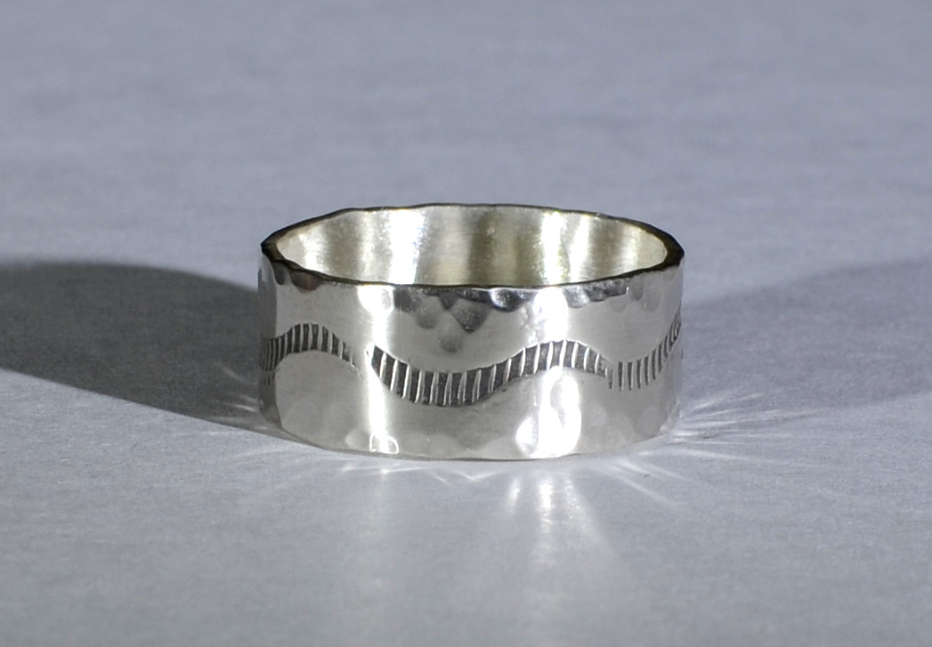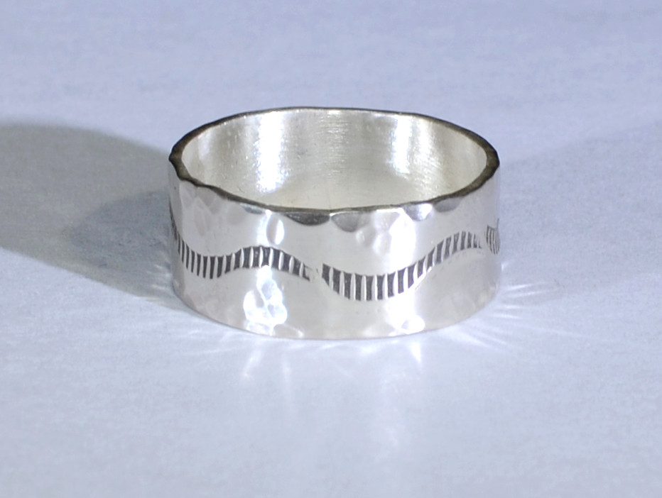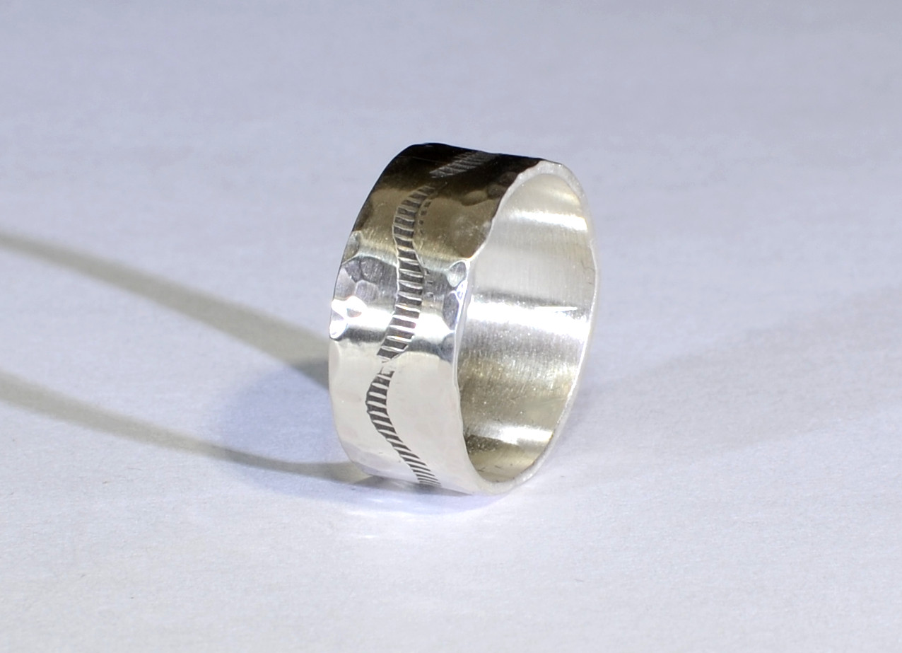sterling ring with hand stamped pattern