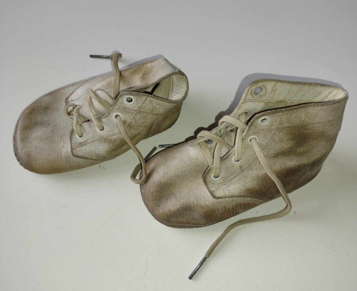 как выглядит VTG White Leather Lace Up Baby Shoes Booties Classic Antique Style фото
