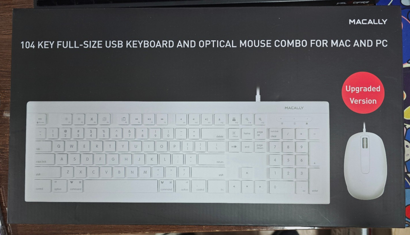 New - Macally 104 Key Full-Size USB Keyboard Mouse Combo For Mac And PC
