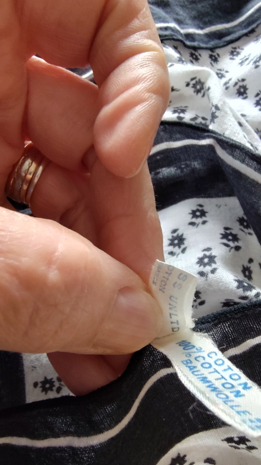 Ray Strauss Unltd Black/Ivory Micro Daisy Square Cotton Scarf....25x26..France