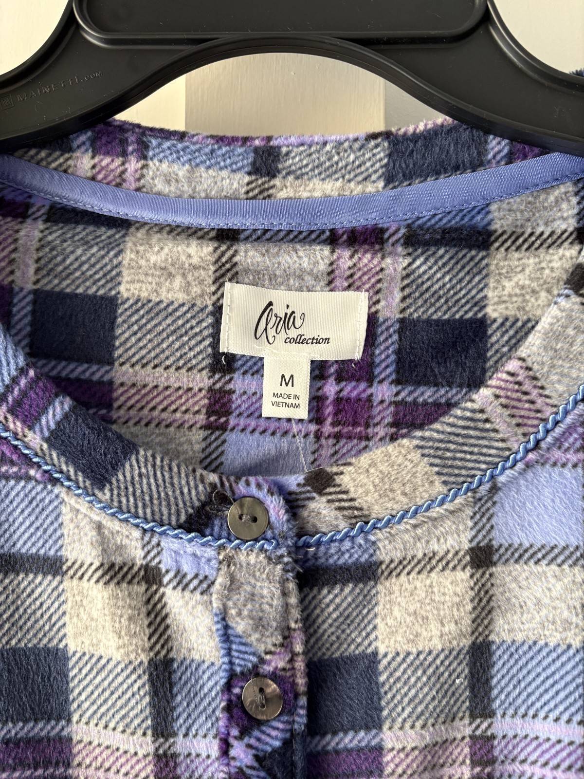 как выглядит Aria Womens Velour Nightgown Long Sleeve Size M Blue/Grey Plaid New with Tags фото