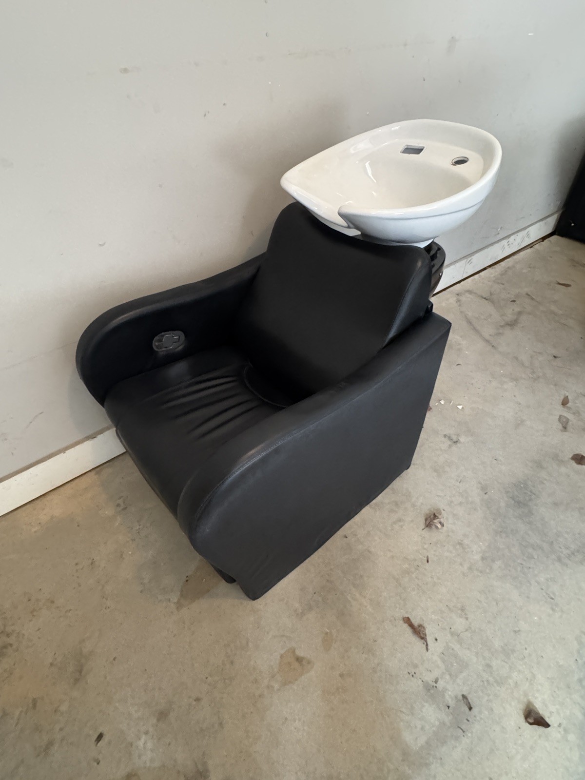 как выглядит Salon Backwash Chair Professional Shampoo Unit with Tilting Porcelain Bowl Black фото
