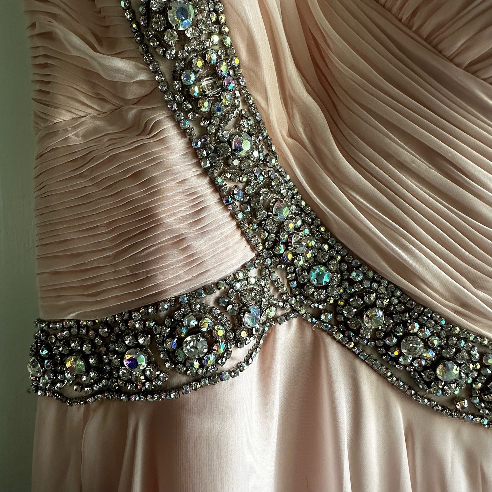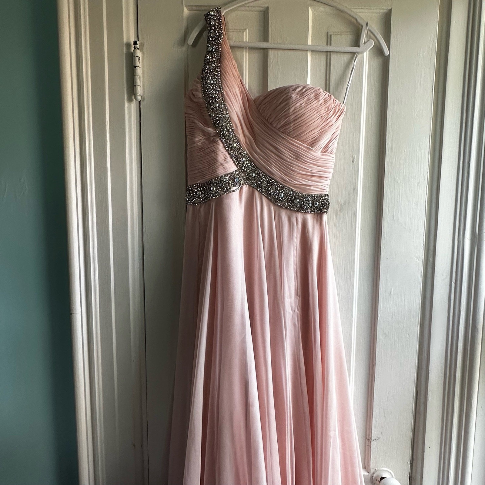 Jovani Blush Pink Jewel Embellished Chiffon Gown Dress