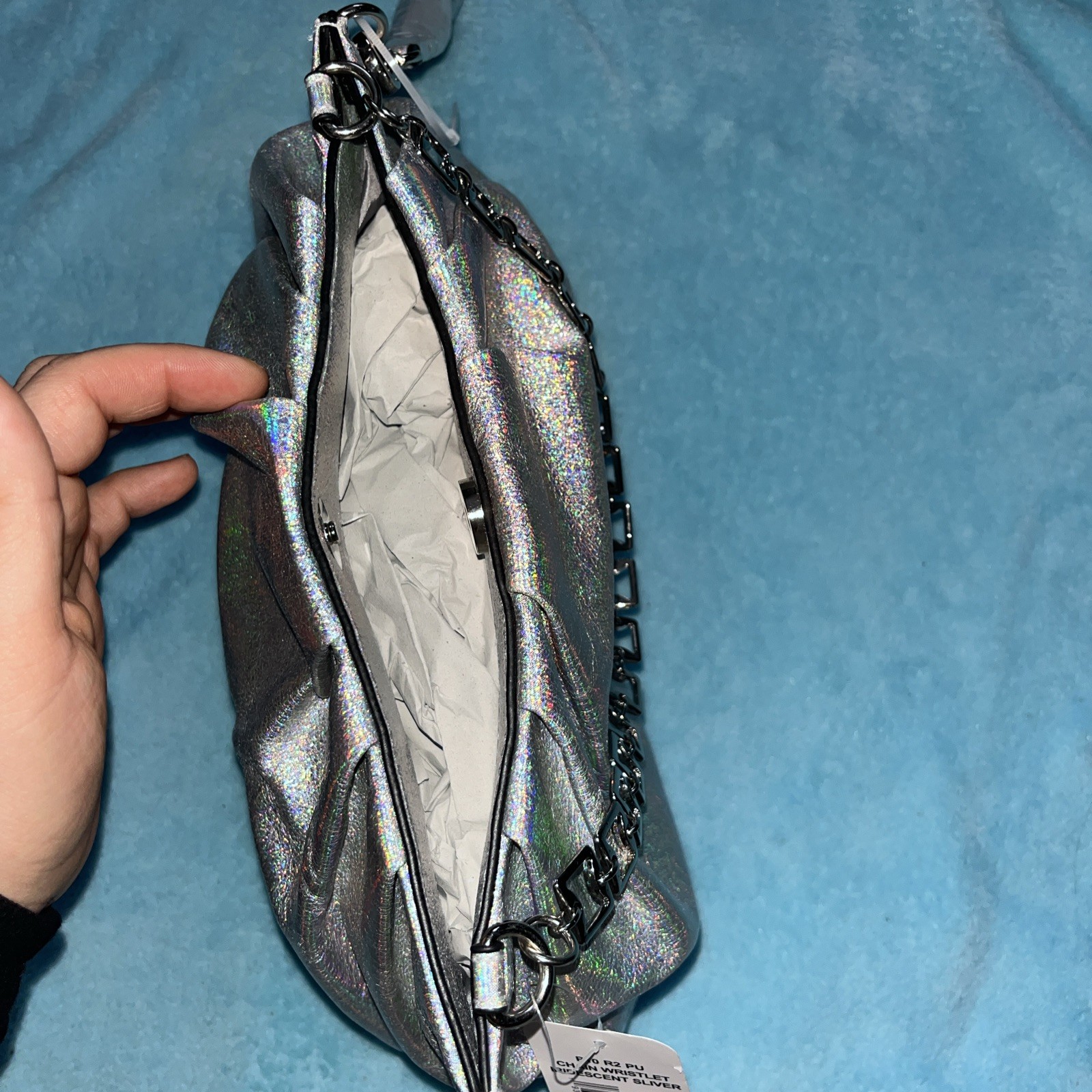 как выглядит VTG R2 90s 2000s Purse Oversized Wristlet With Chain Designer Iridescent фото